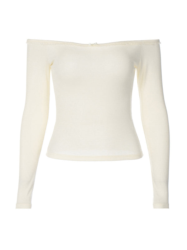 Apricot Vintage Off Shoulder Slim Long Sleeve Tee