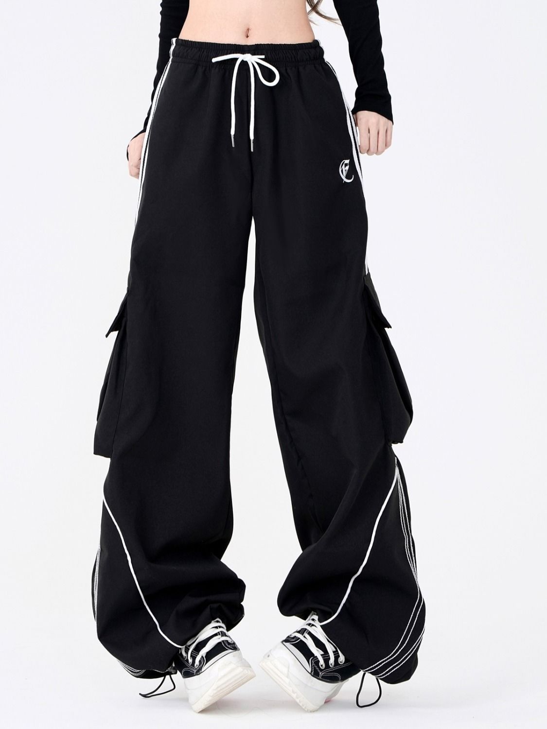 The relaxed. straight-leg fit allows for ease of movement with an elastic waistband and adjustable drawstrings for a customized fit.