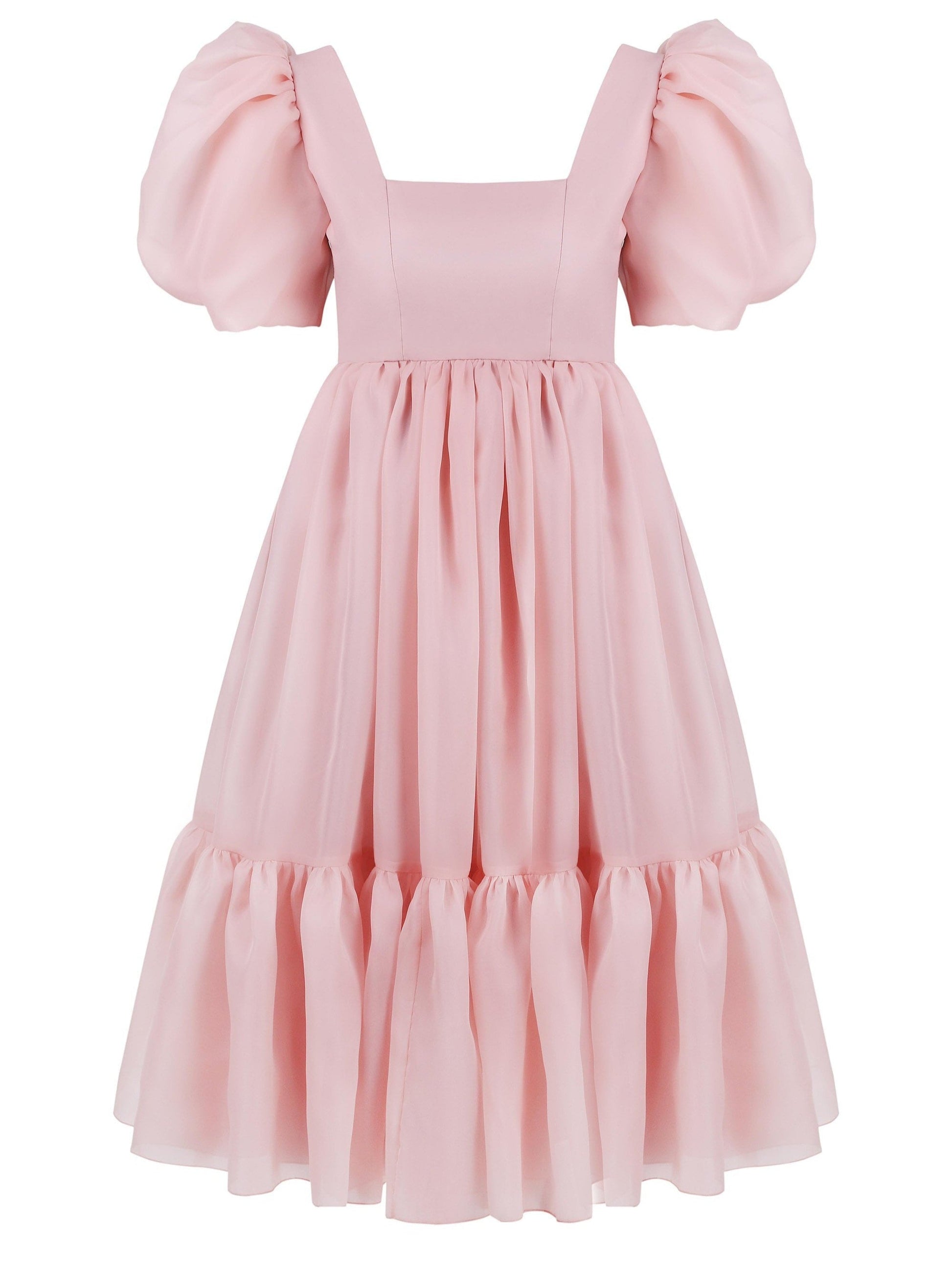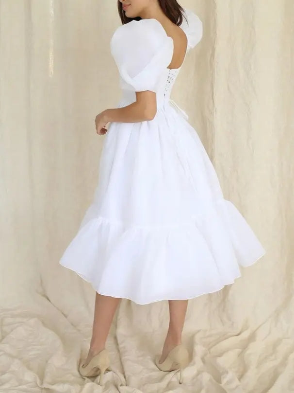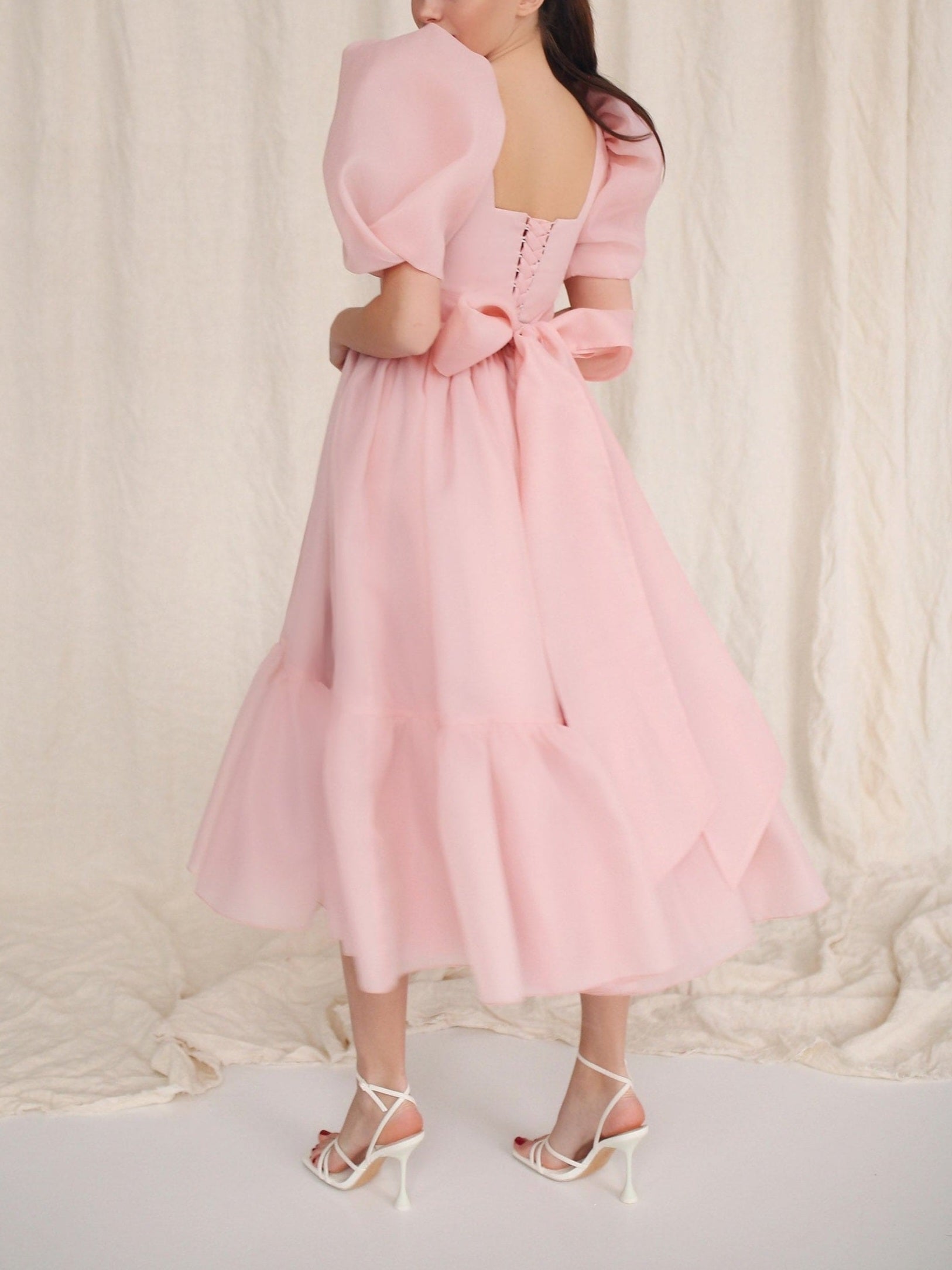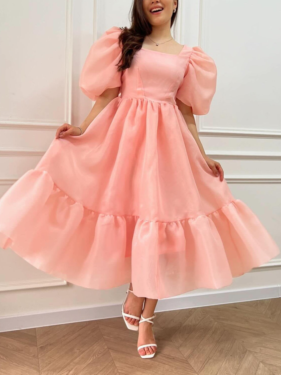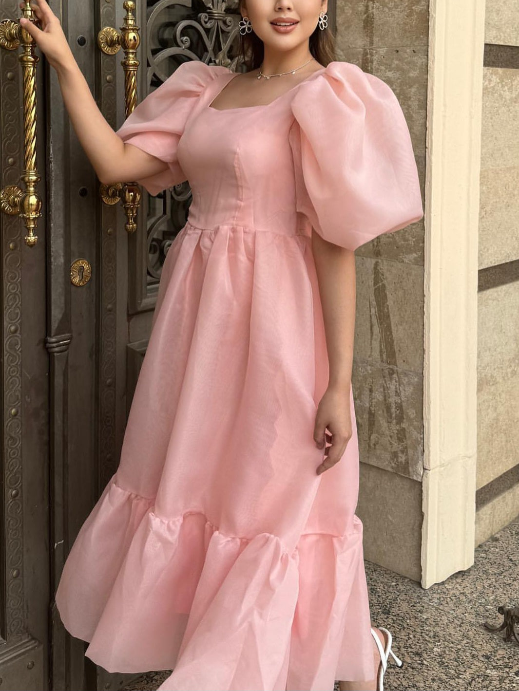 This midi dress is both practical and stylish. featuring puff sleeves designed to add volume and a touch of drama.