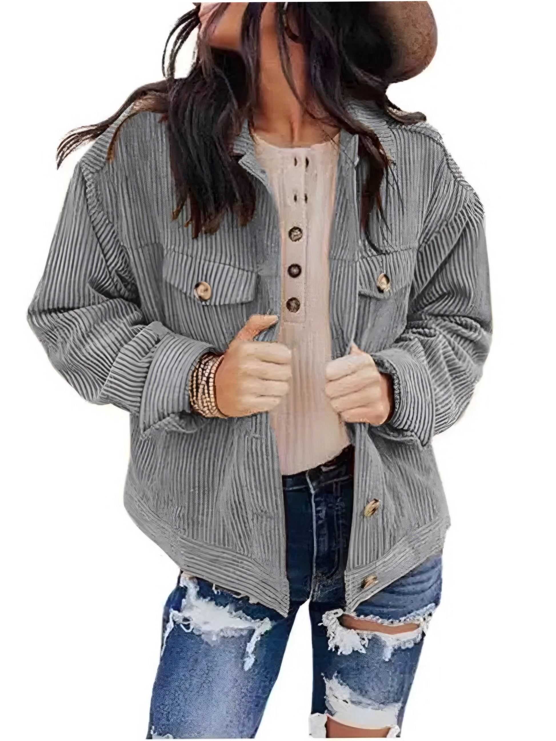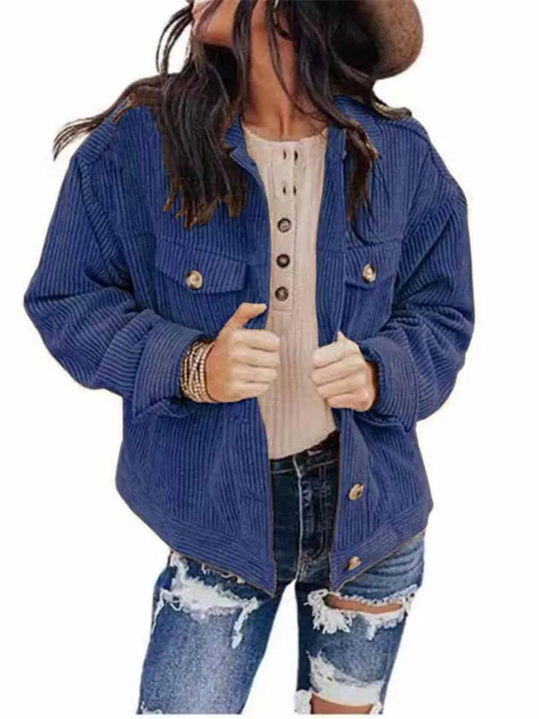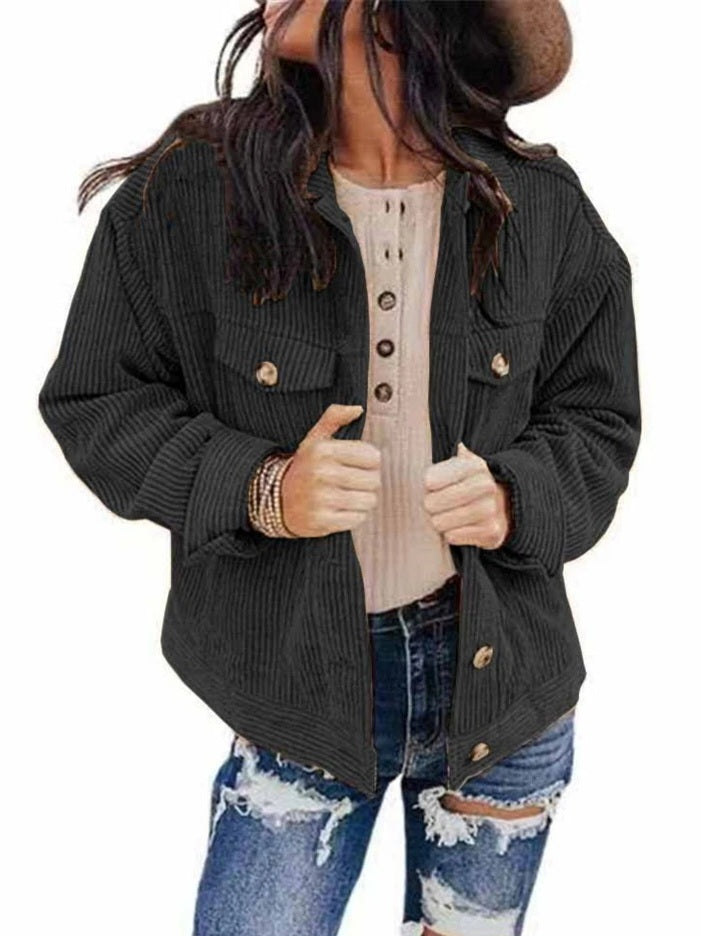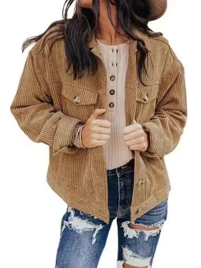 Corduroy Chest Pockets Long Sleeve Shirt
