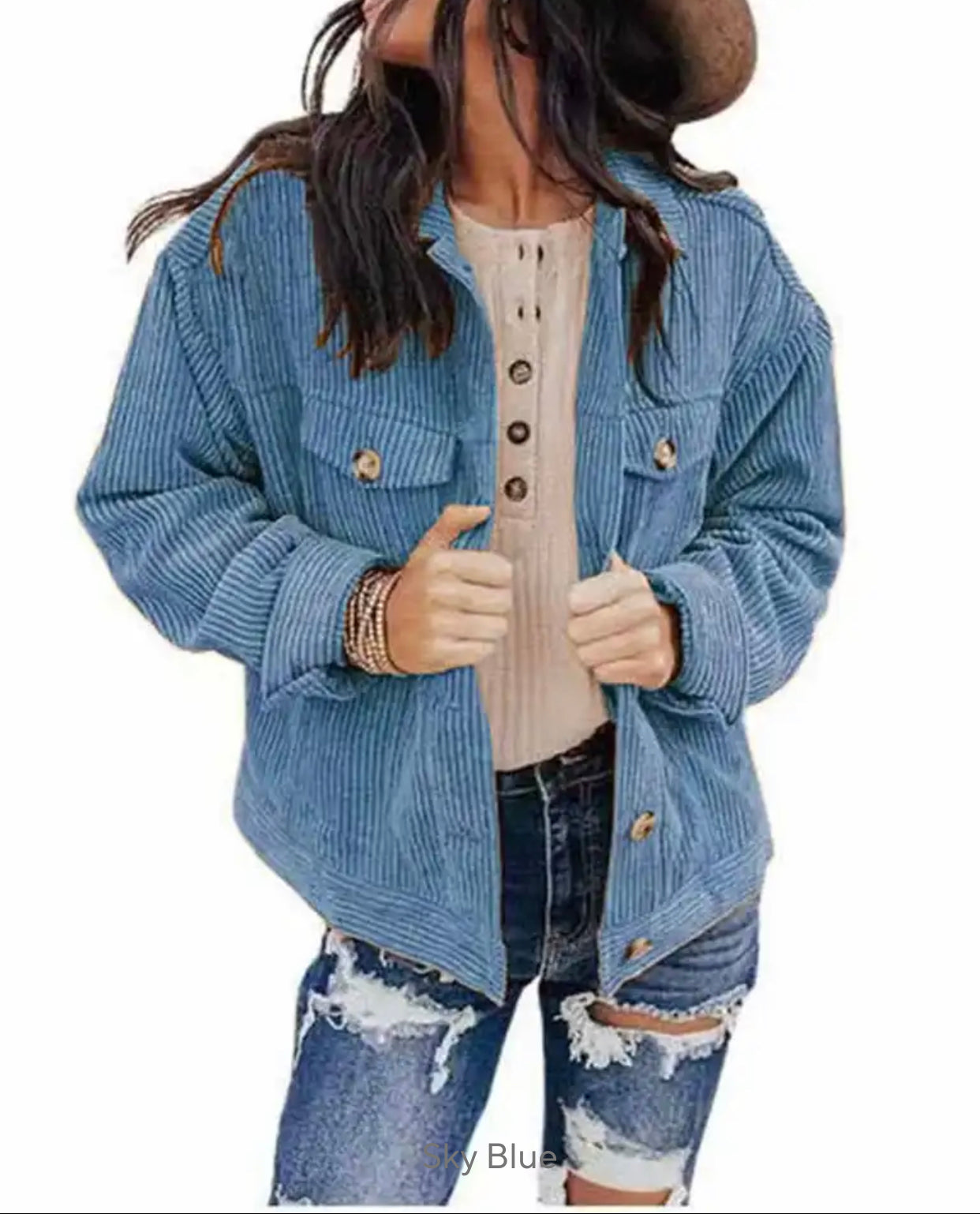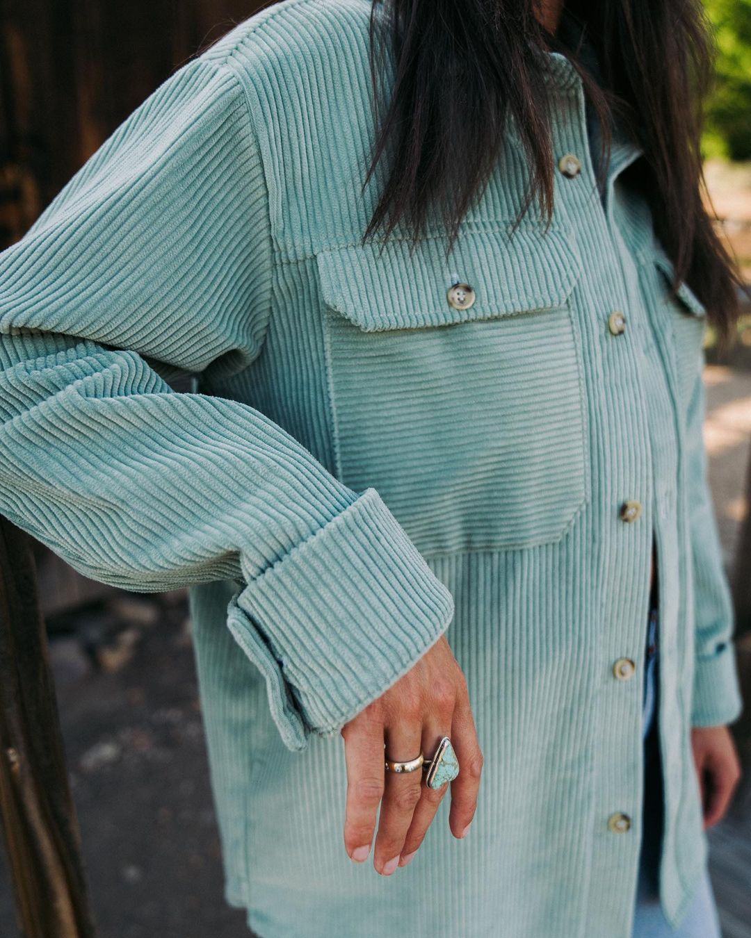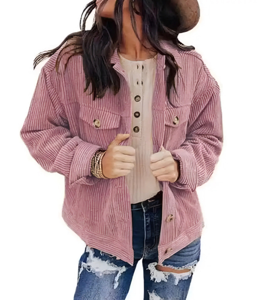 Corduroy Chest Pockets Long Sleeve Shirt