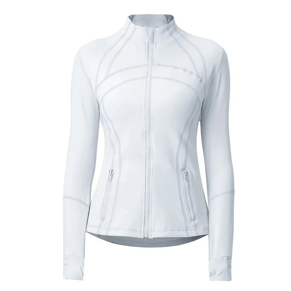 The define jacket has 2 side zip pockets. The thumbholes keep sleeves down and chills out. The locker loop provides easy hanging.