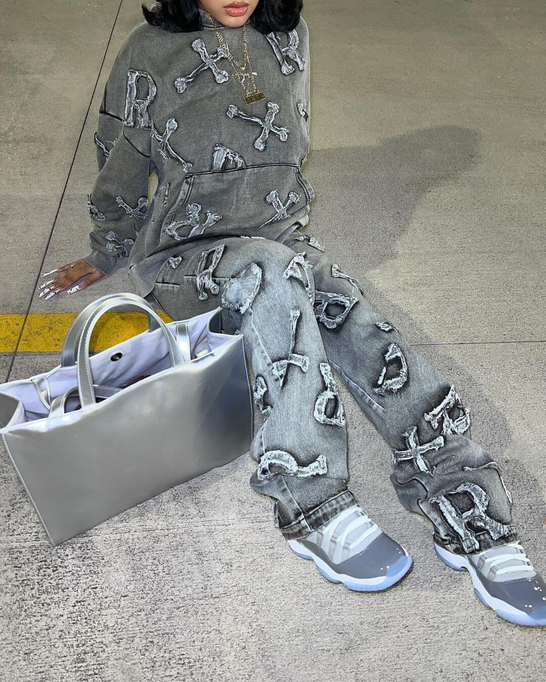This washed patch jeans has a loose-fit with distressed inverted denim patches all over. Signature metallic hardware.