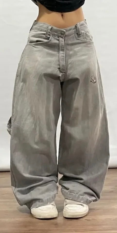 Grey Embroidered Pocket Baggy Jeans