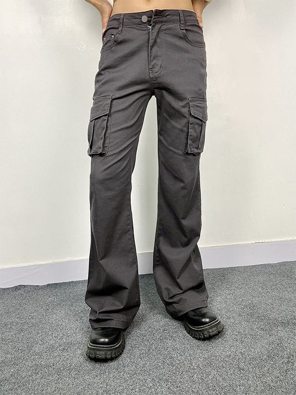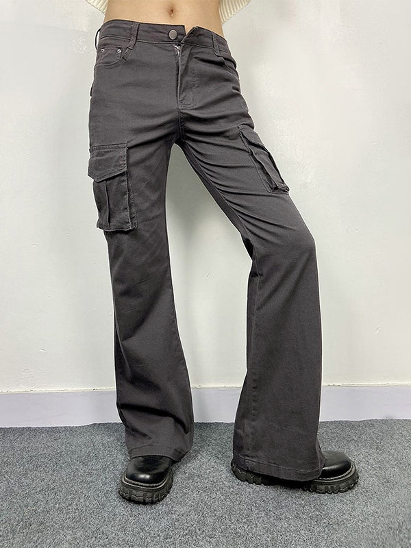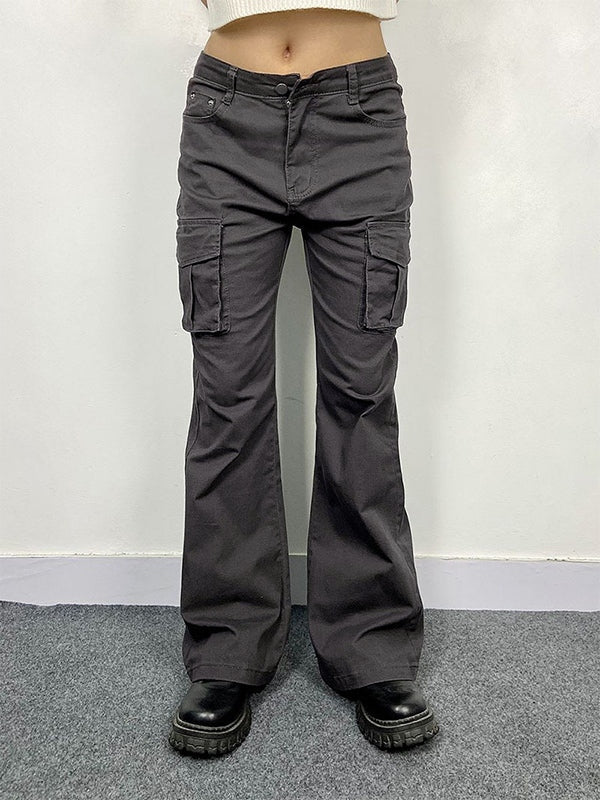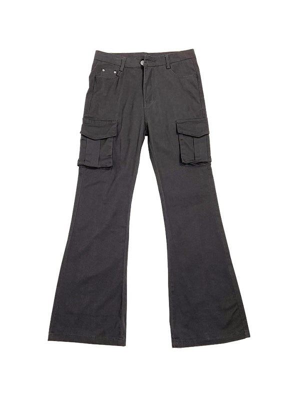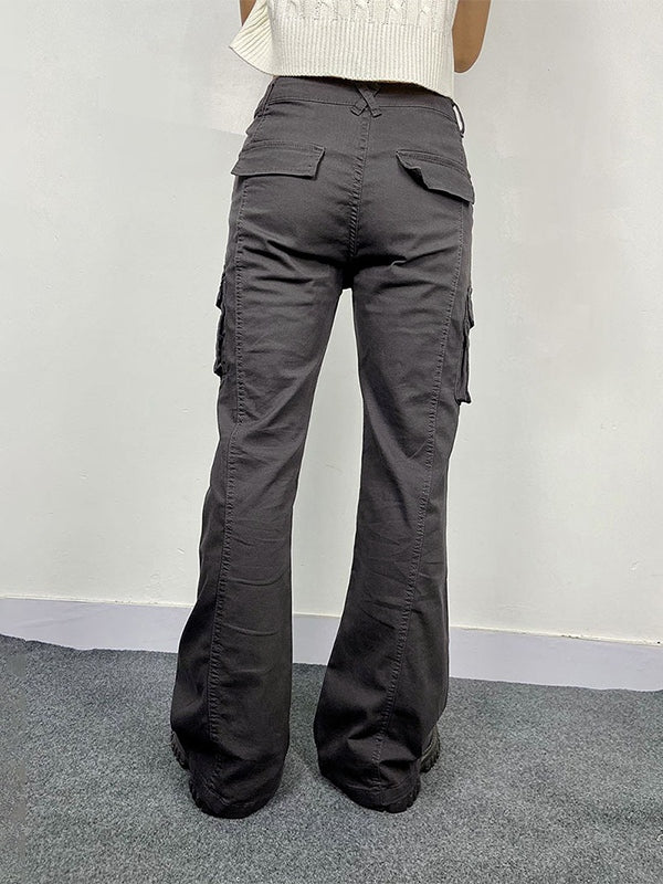 High Elasticity Flare Cargo Pants with Flap Pockets