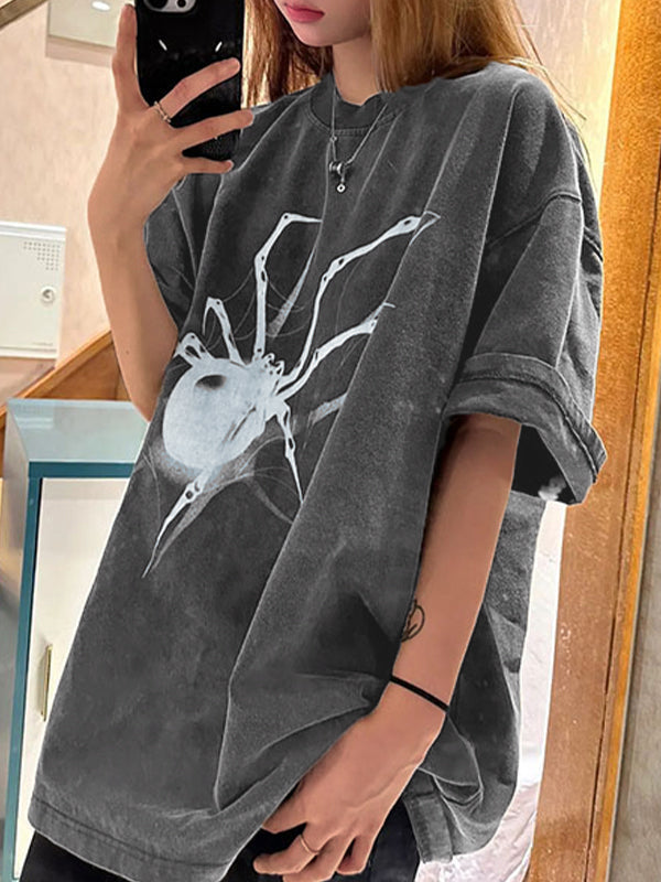 Hip Hop Oversized Spider Print Short Sleeve Tee