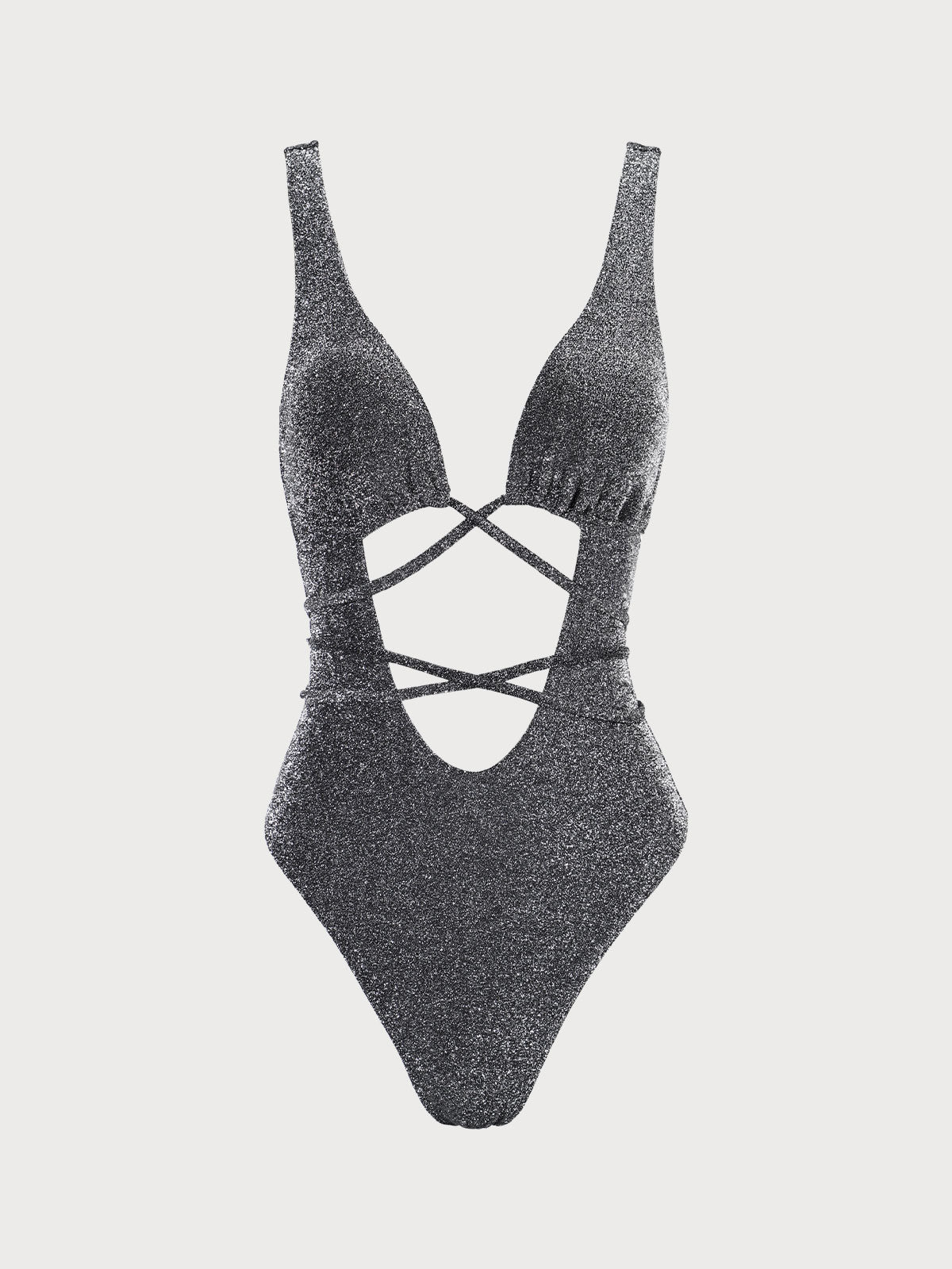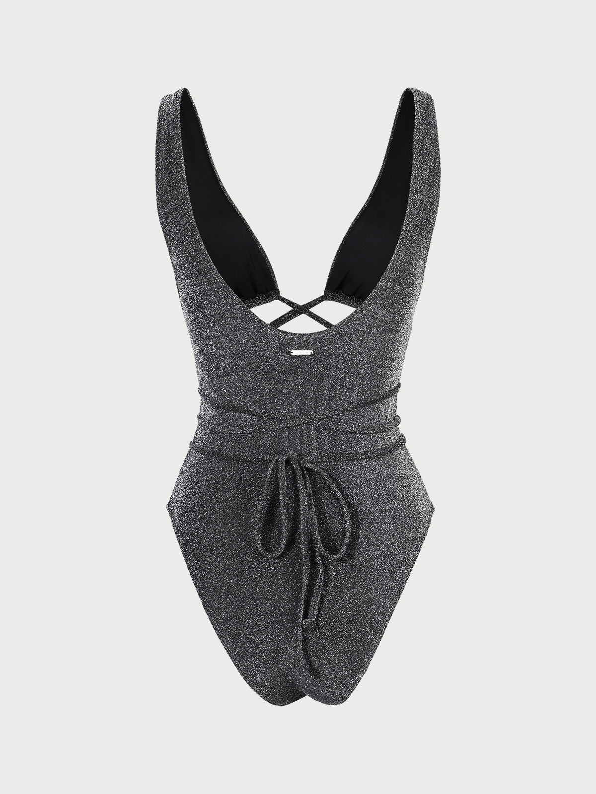 Black Lurex Cutout-Front One-Piece Swimsuit