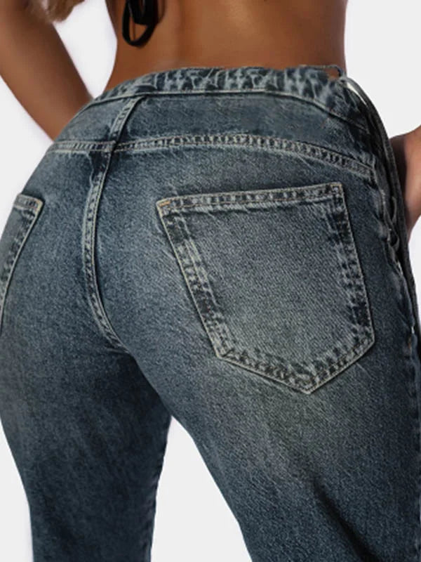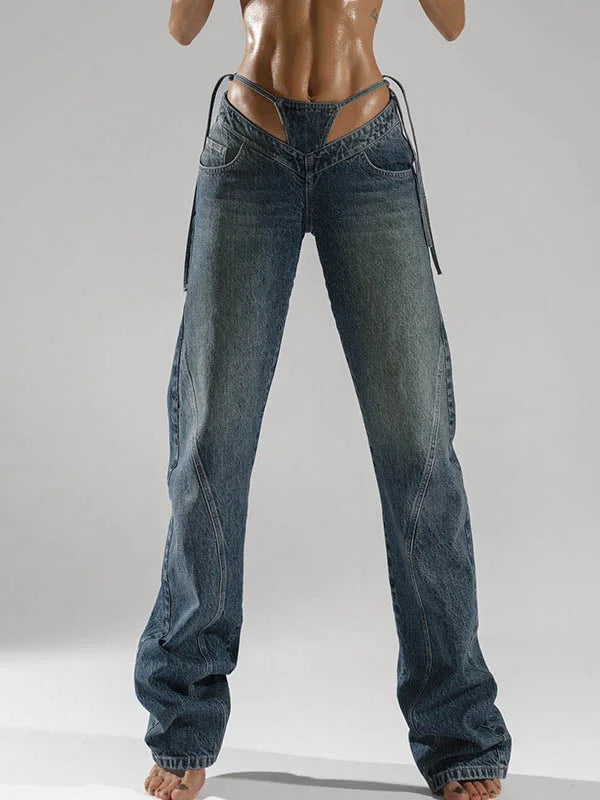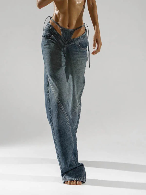 - Unique Hollow and Strap Detailing: The hollow cutouts and strap accents add a playful. edgy vibe. making these jeans a show-stopping addition to your wardrobe.