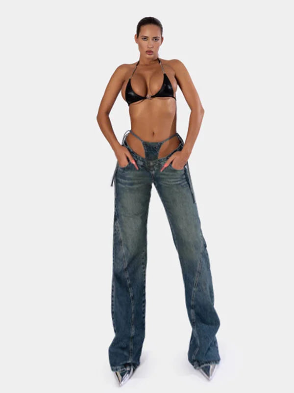 Mabel �Strap Hollow Panties Fake Two-Piece Jeans Bold Style with an Edge