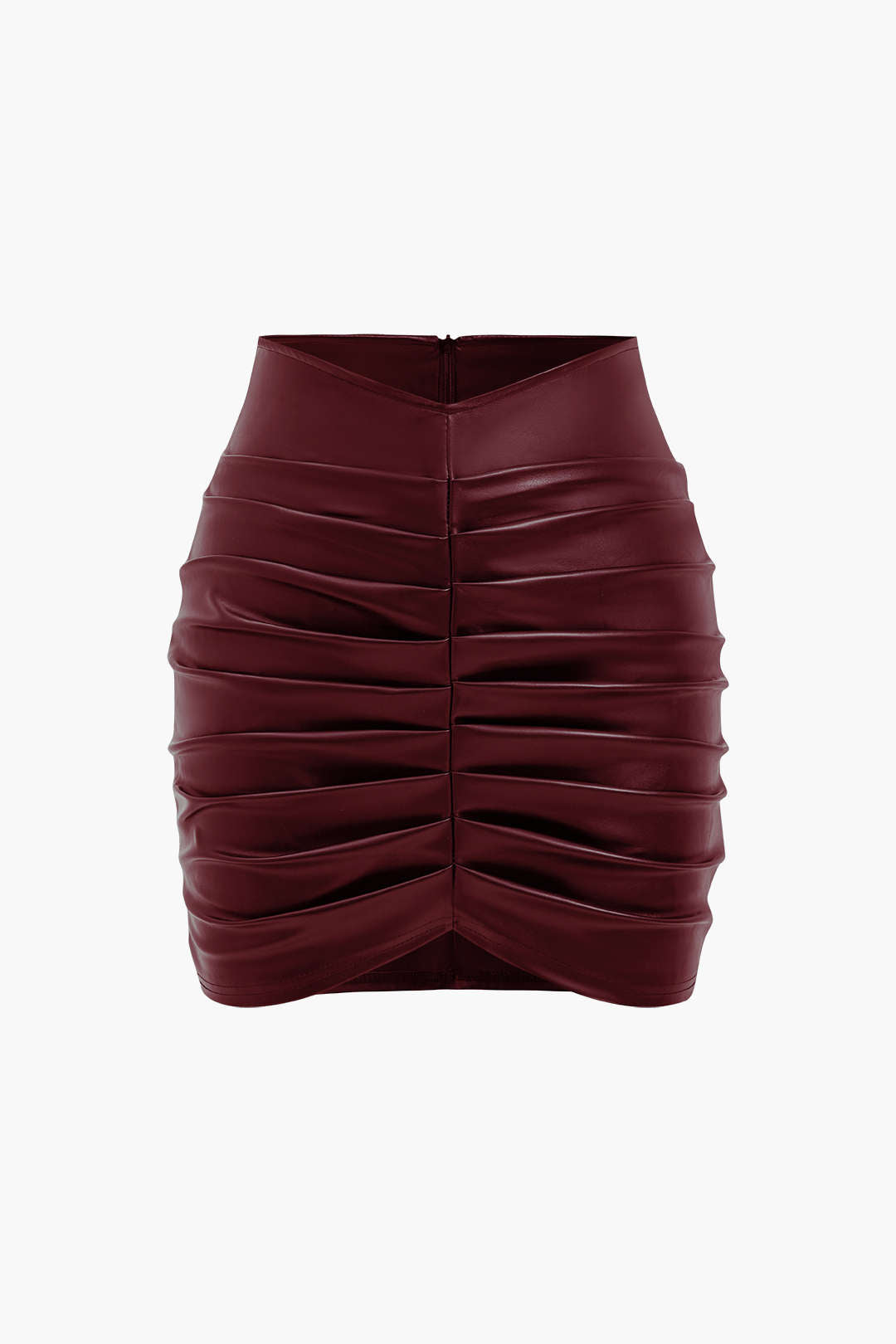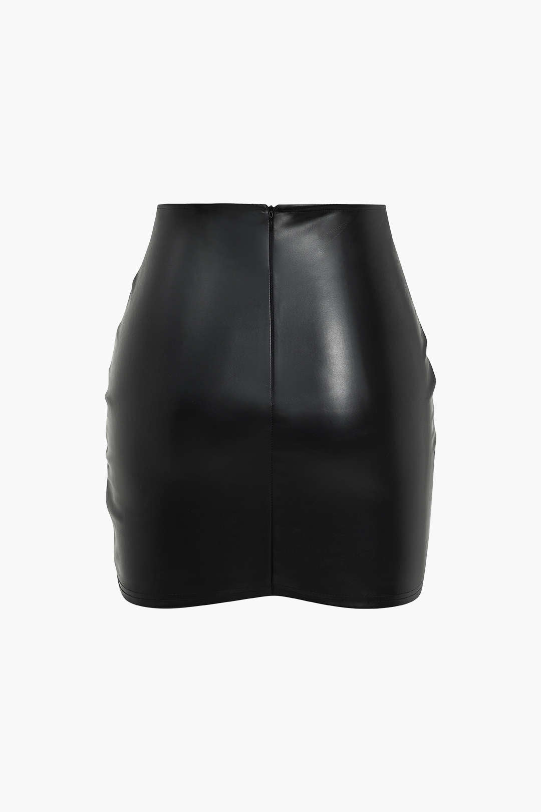 Solid Faux Leather Ruched Skirt