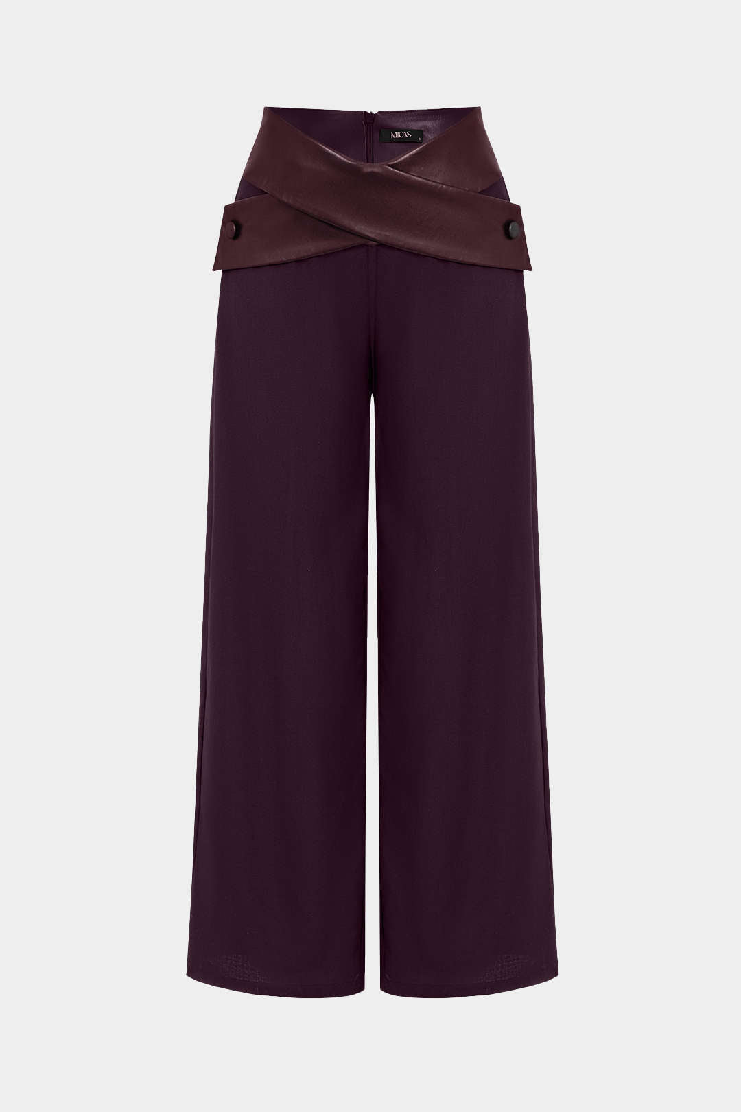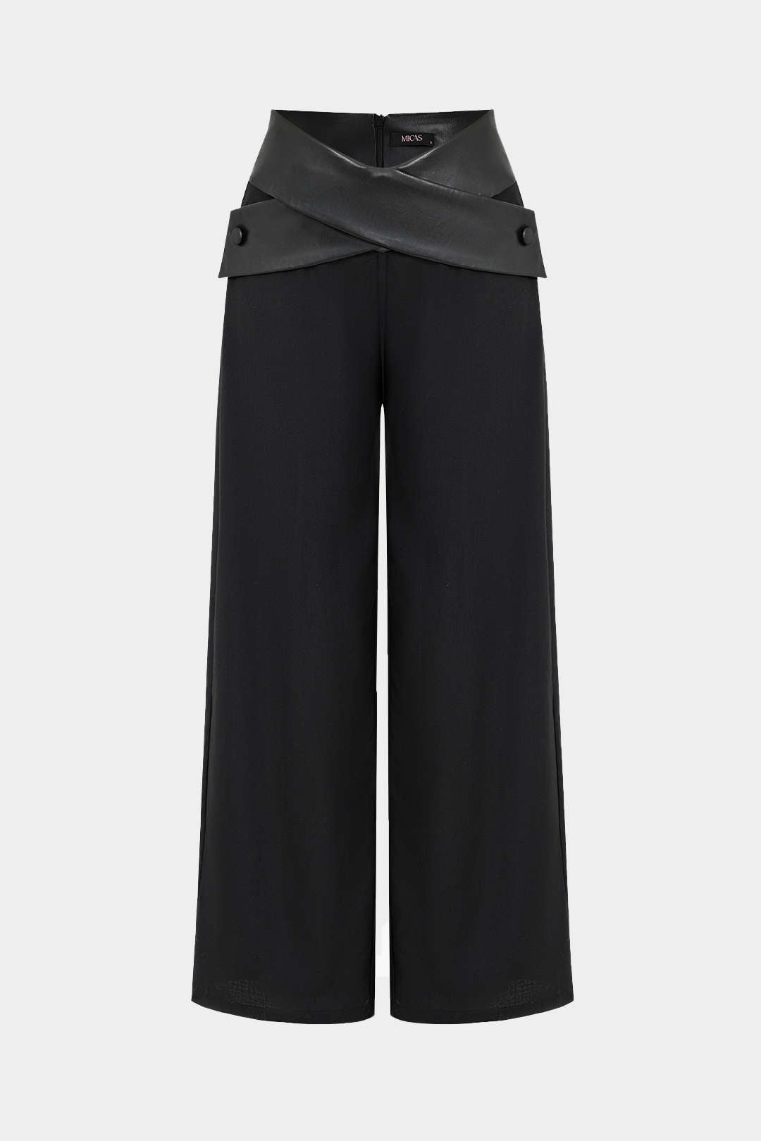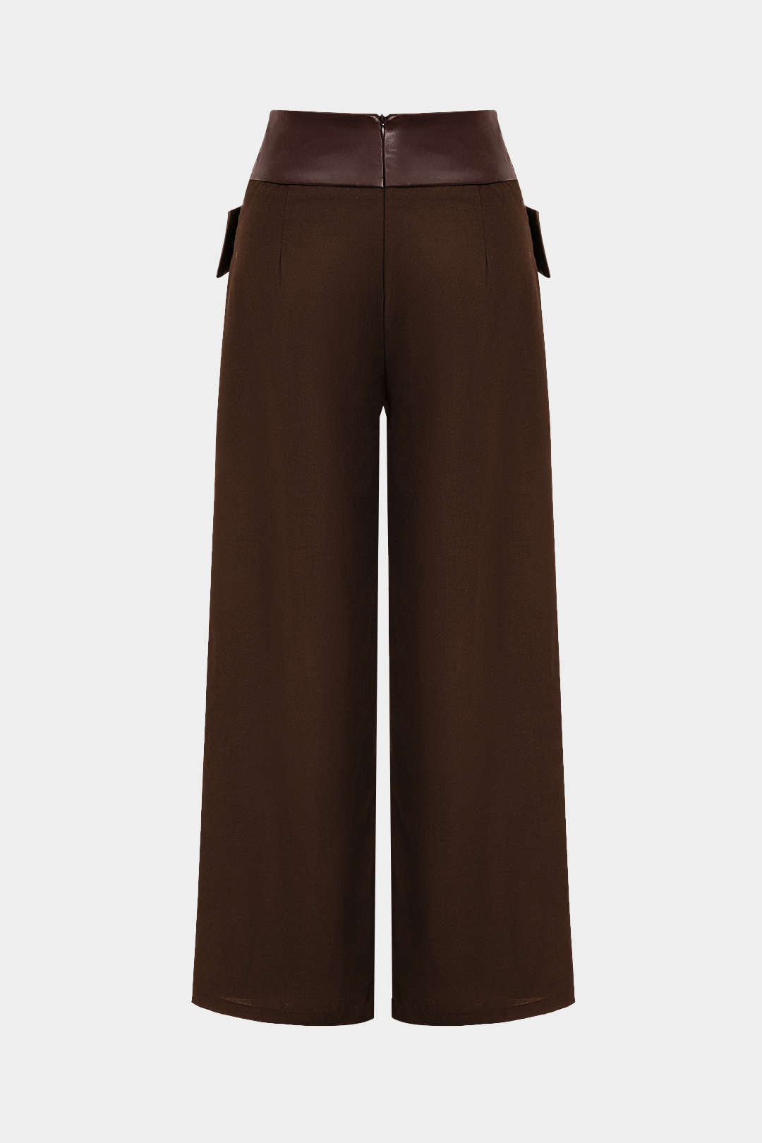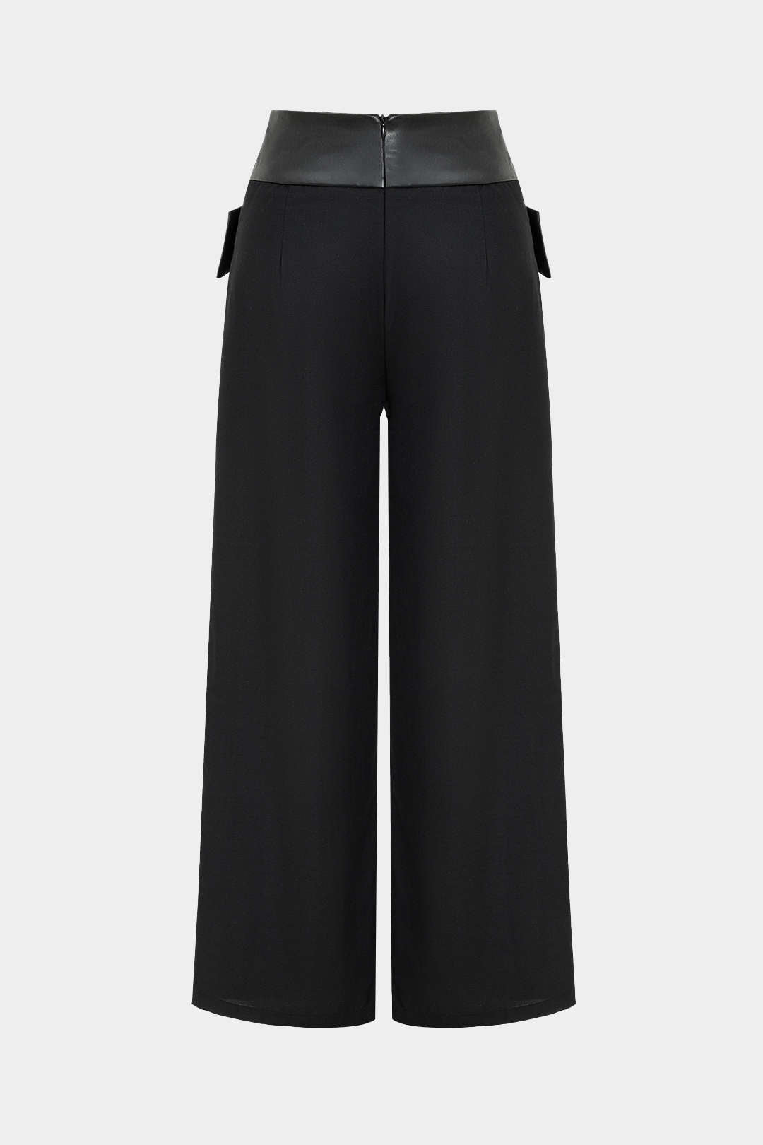 Solid Faux Leather Patchwork High Waist Crossed Pocket Trousers