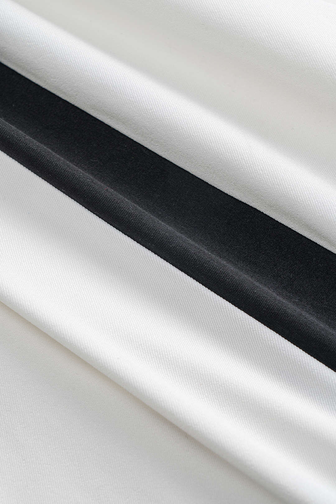 Contrast Pleated Bow Asymmetrical Wide Leg Trousers
