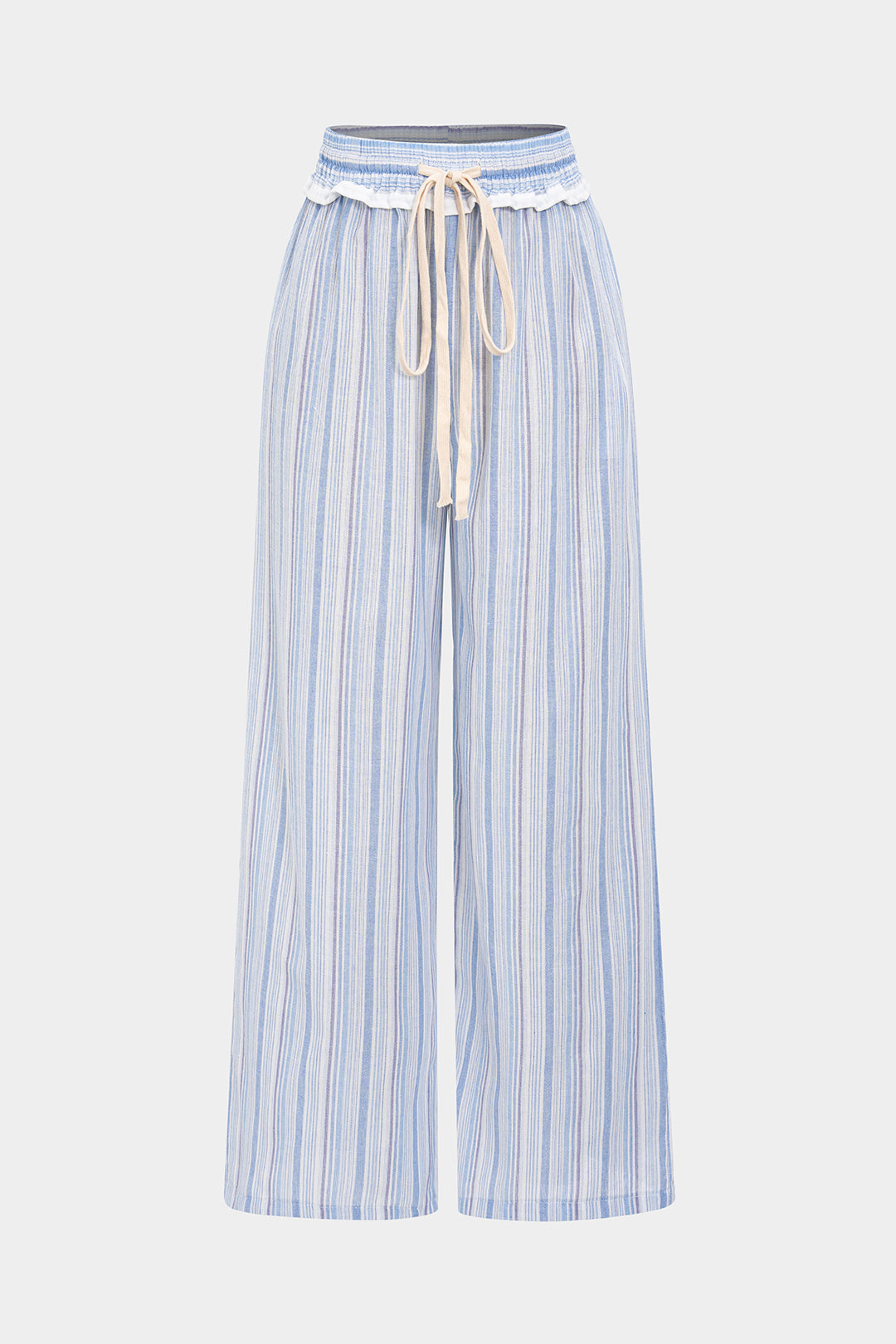 Stripes Contrast Print Tie-Up Wide Leg Trousers