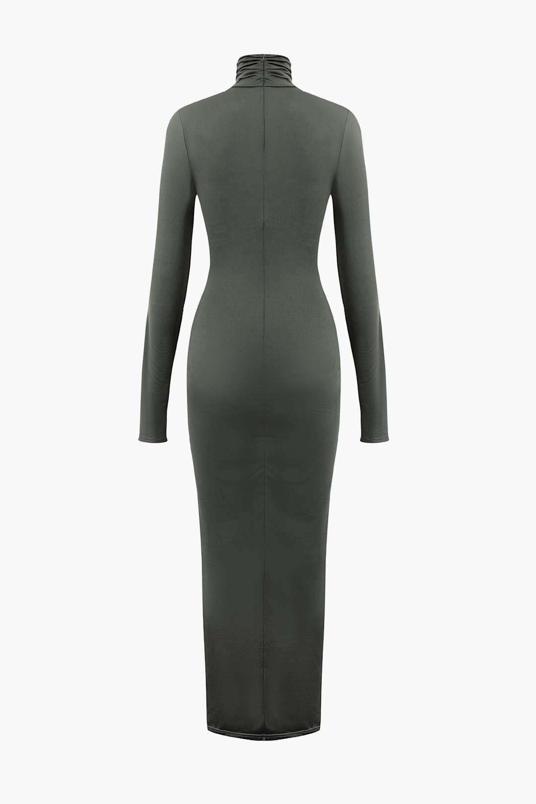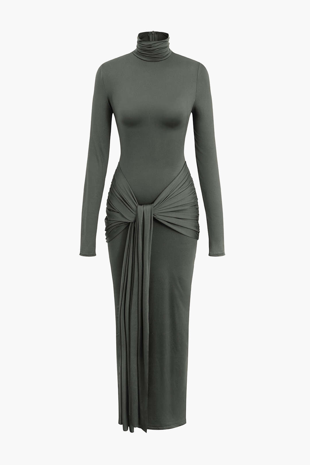 Wrap Ruched High Neck Long Sleeve Maxi Dress