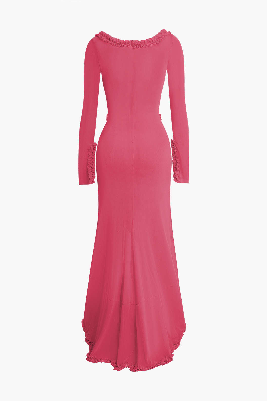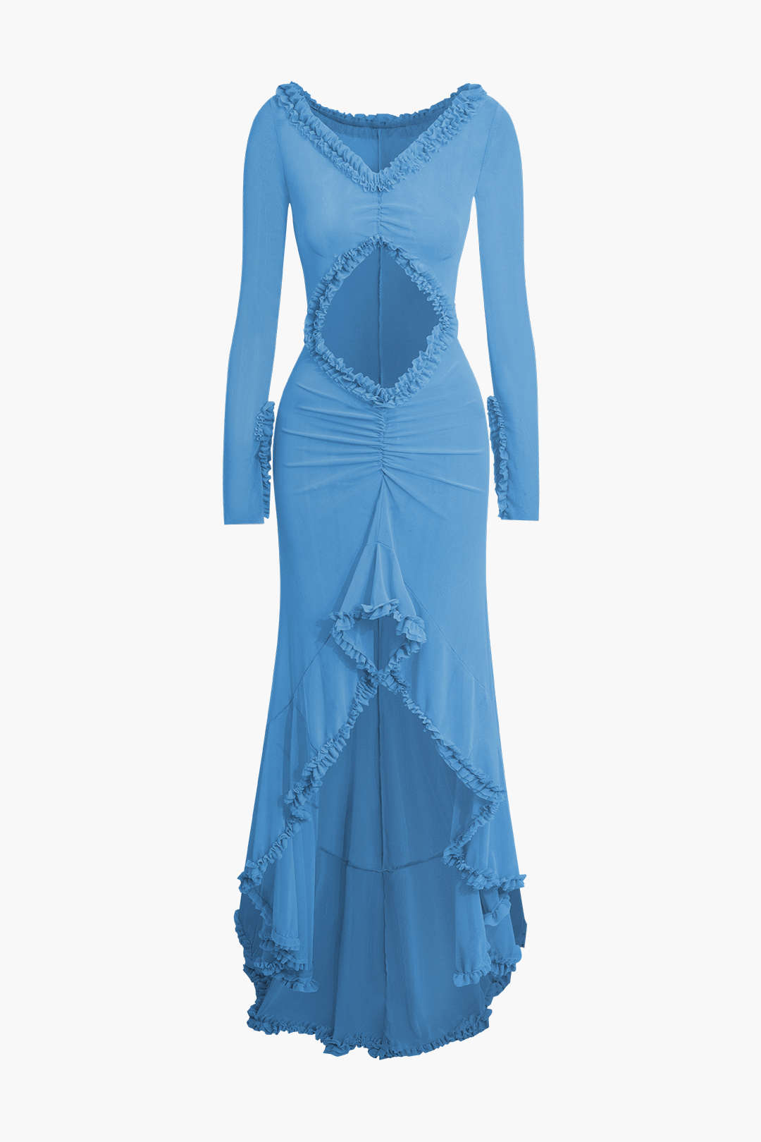 Ruffle Trim Ruched Cut Out Maxi Dress