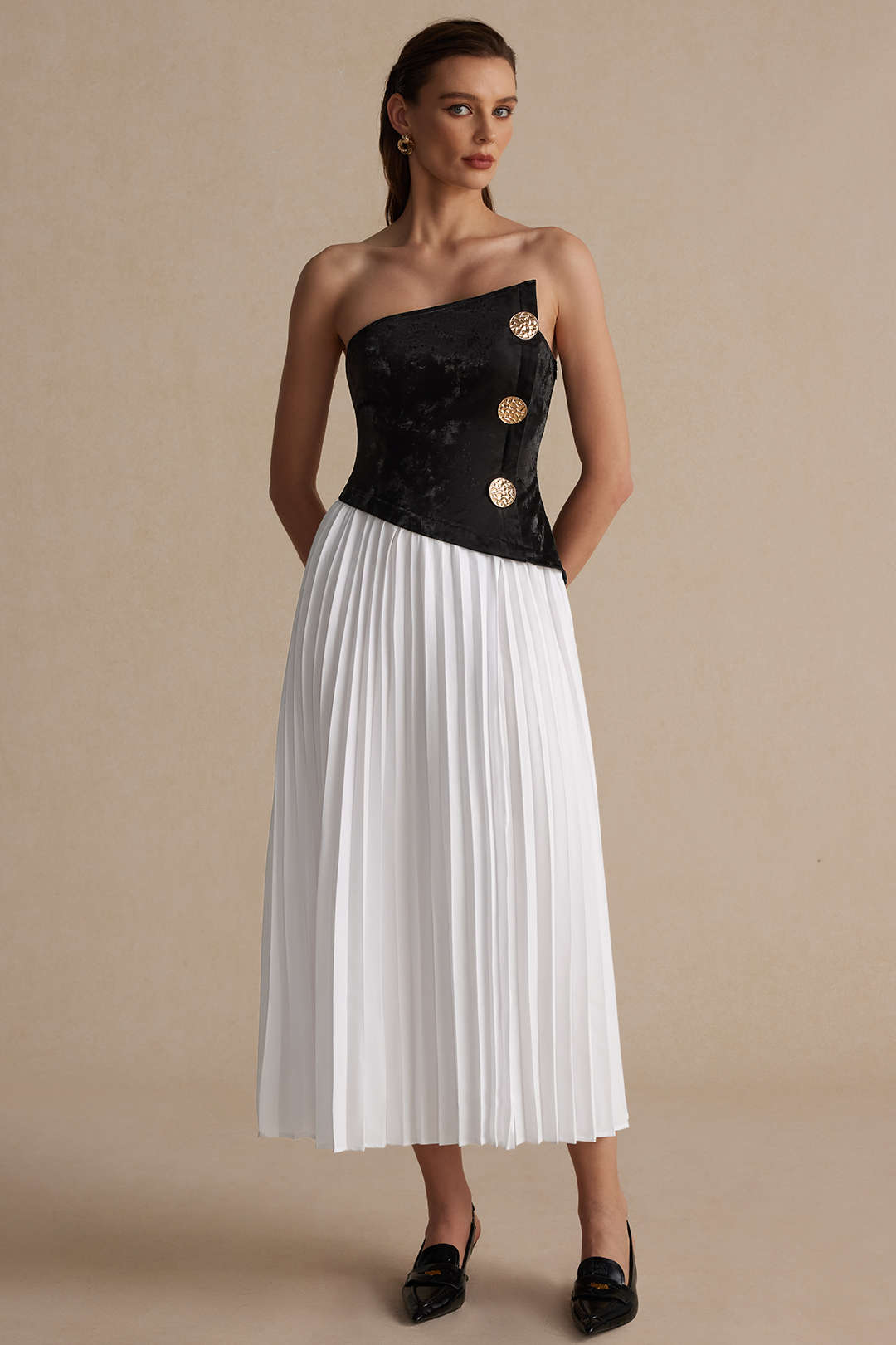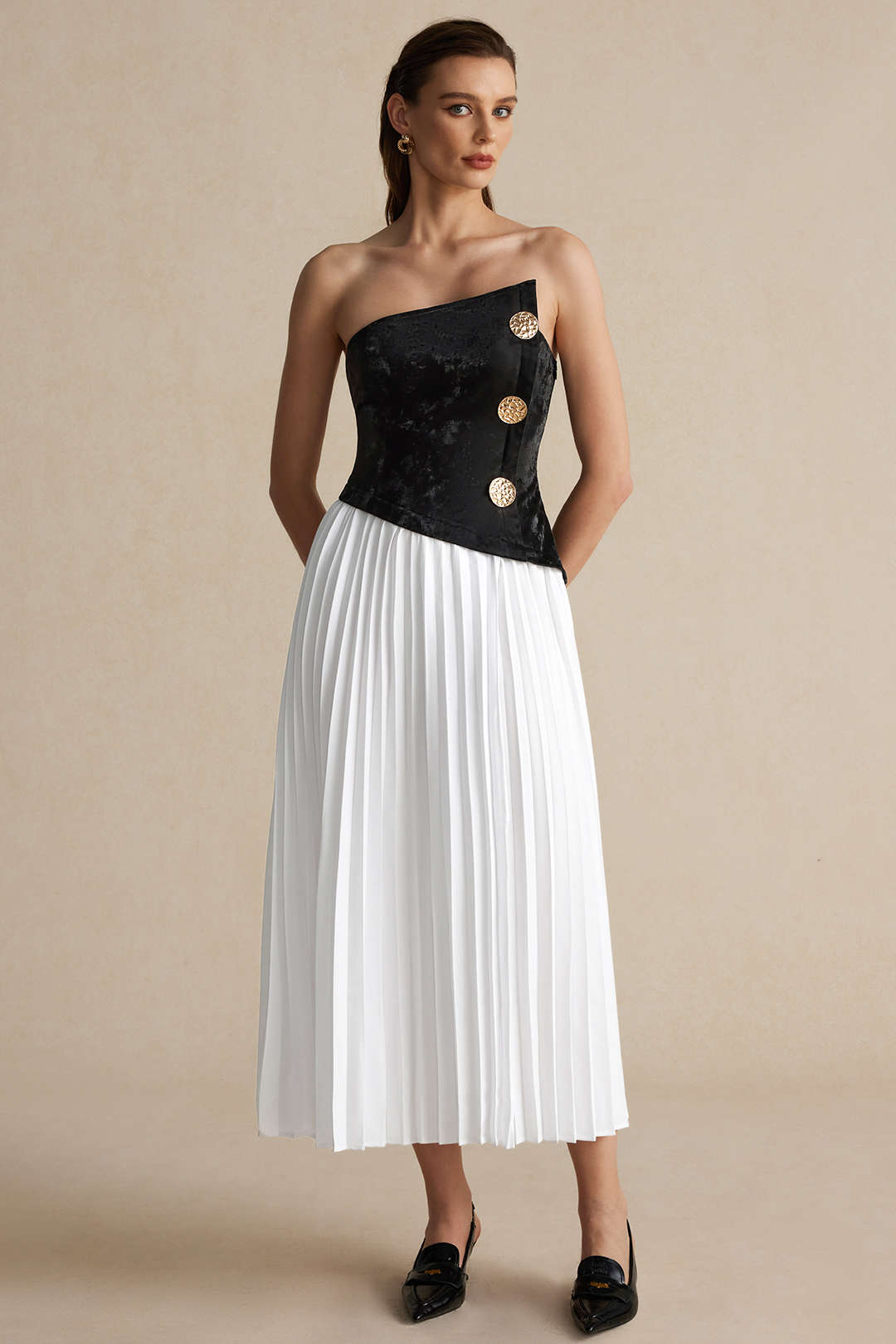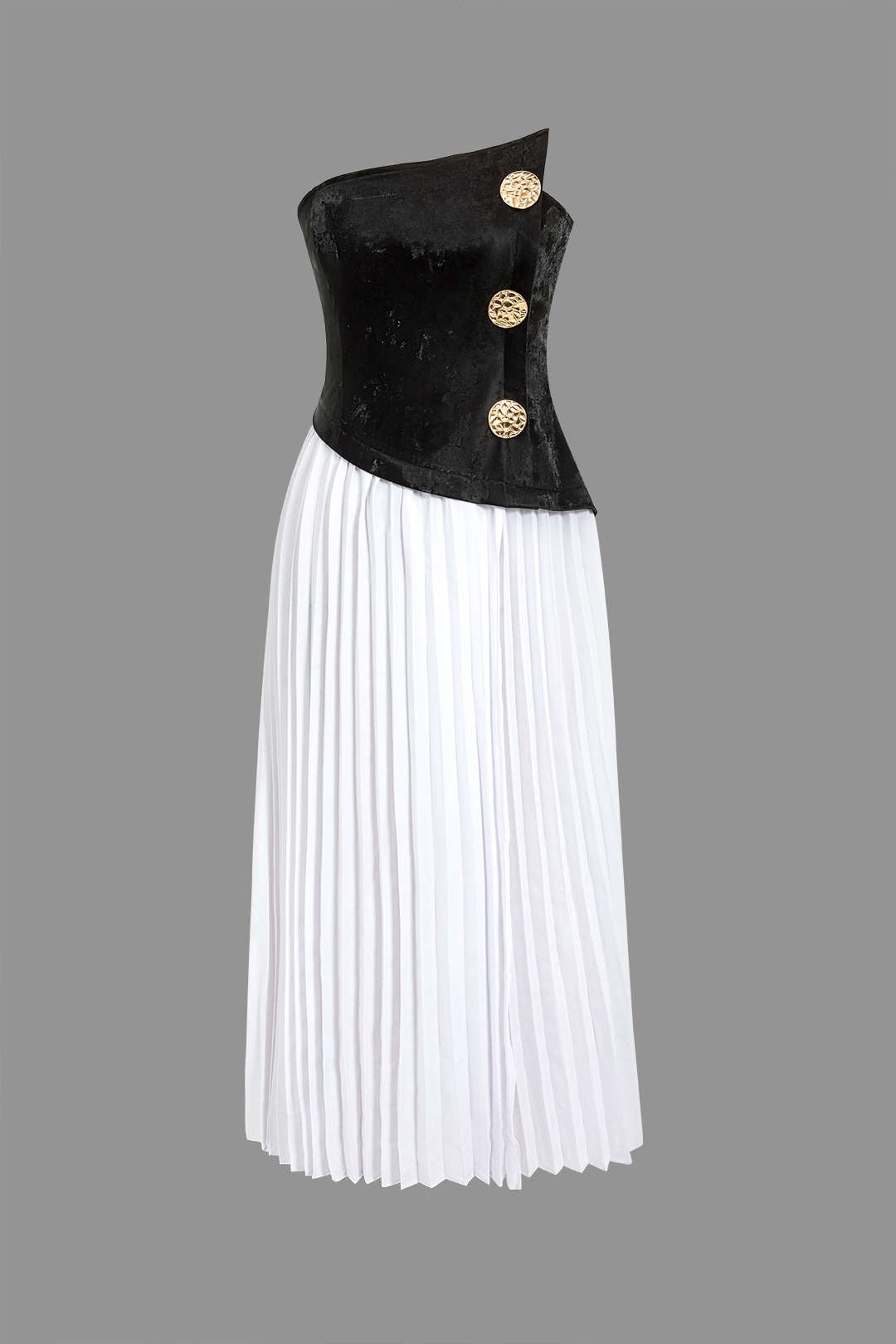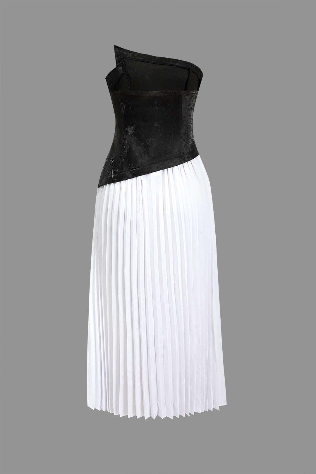 Solid Patchwork Pleated Asymmetrical Maxi Dress