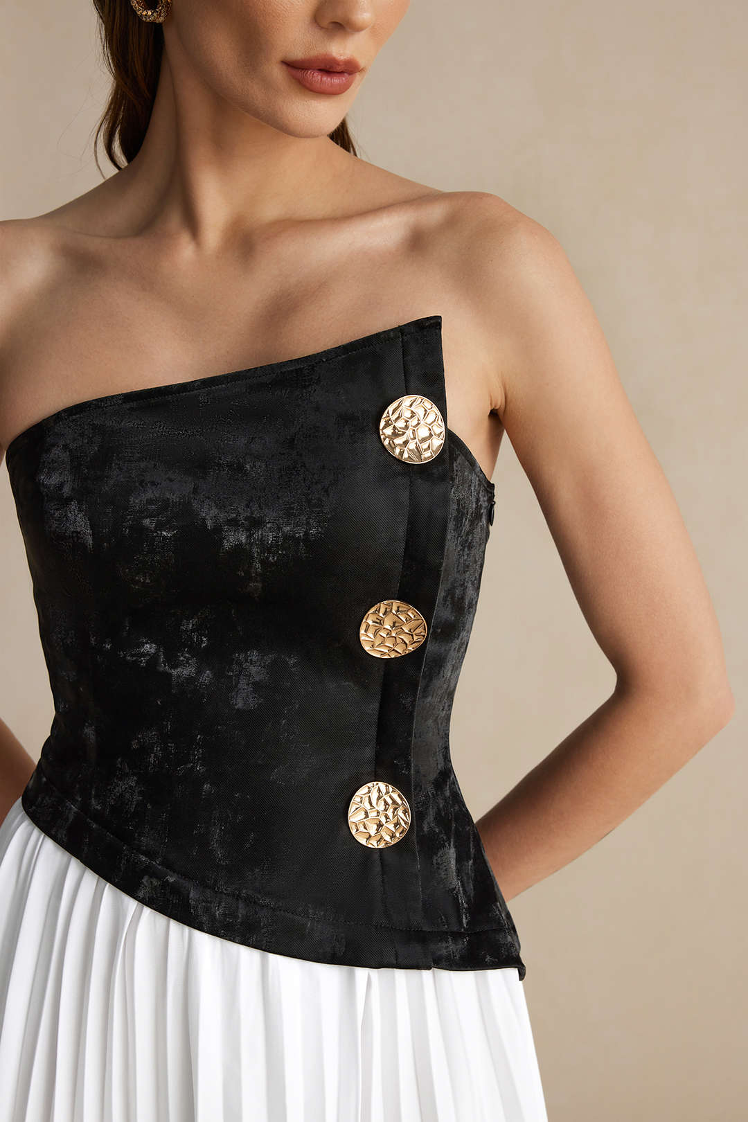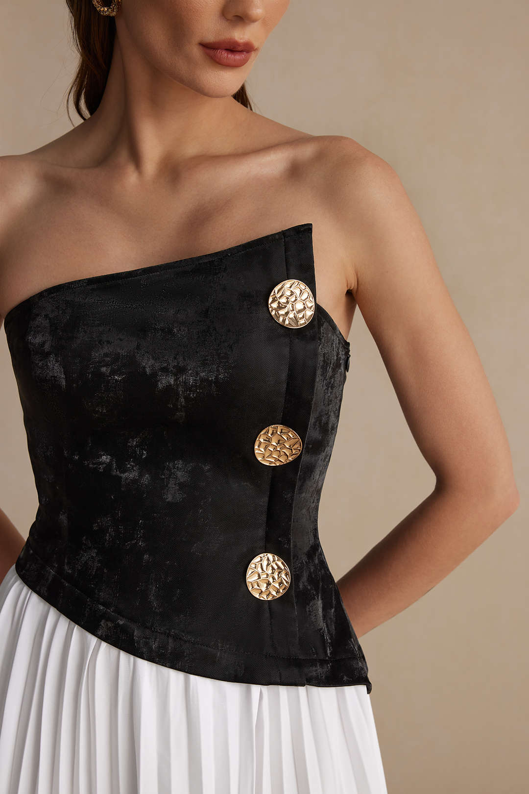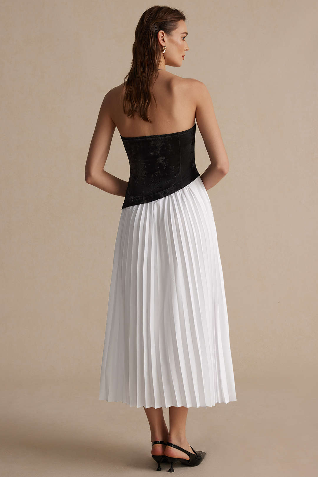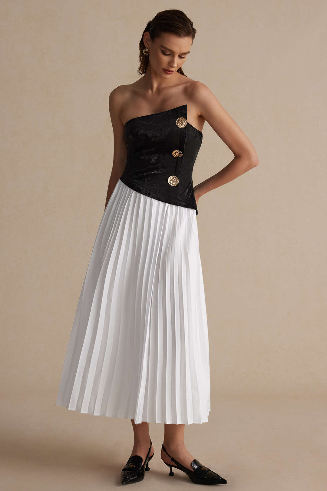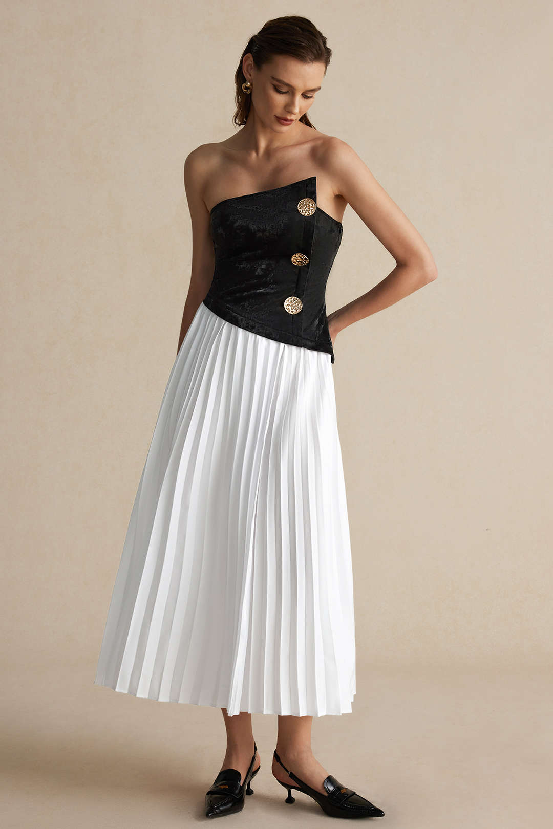 Solid Patchwork Pleated Asymmetrical Maxi Dress