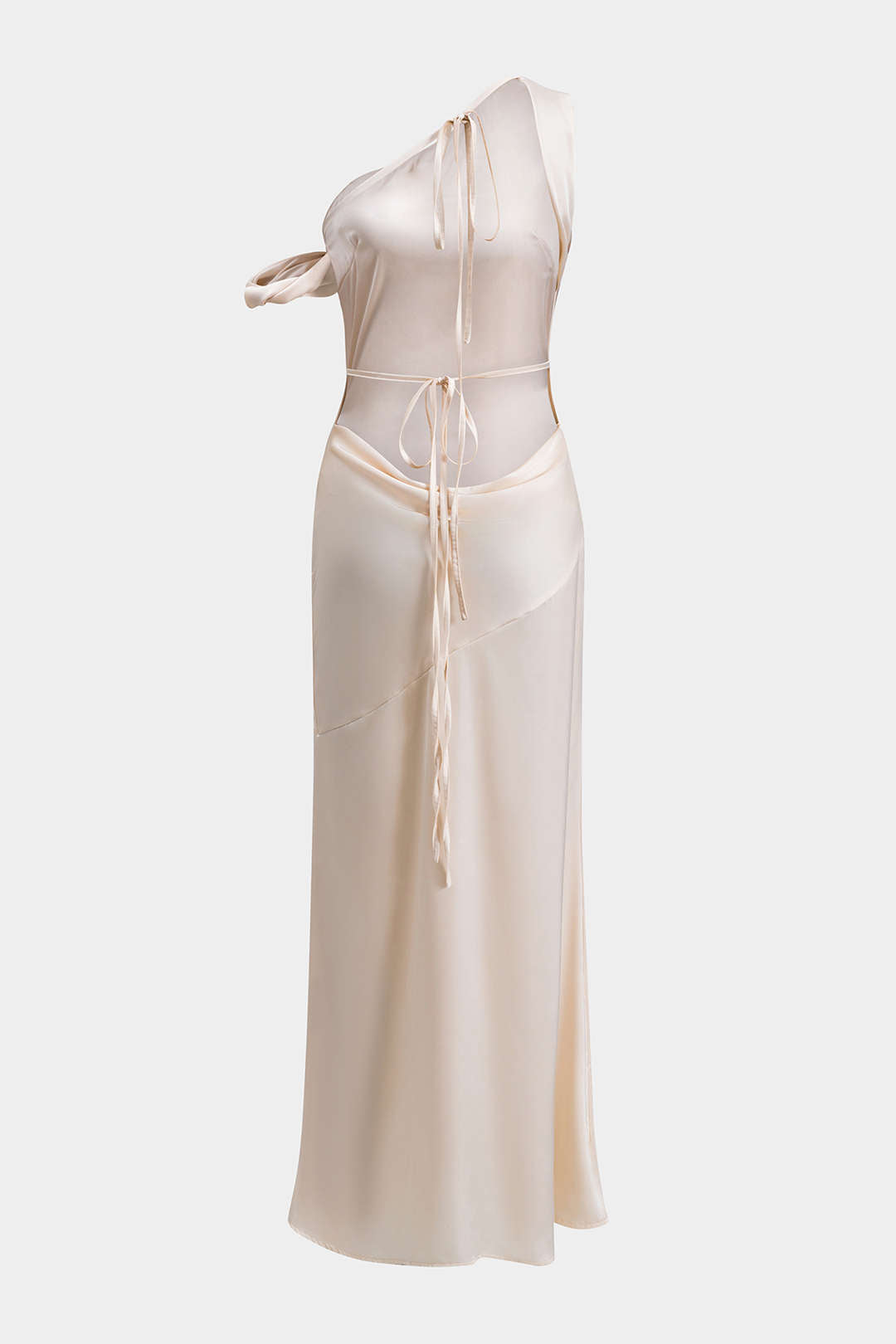 Satin Asymmetrical One Shoulder Backless Maxi Dress