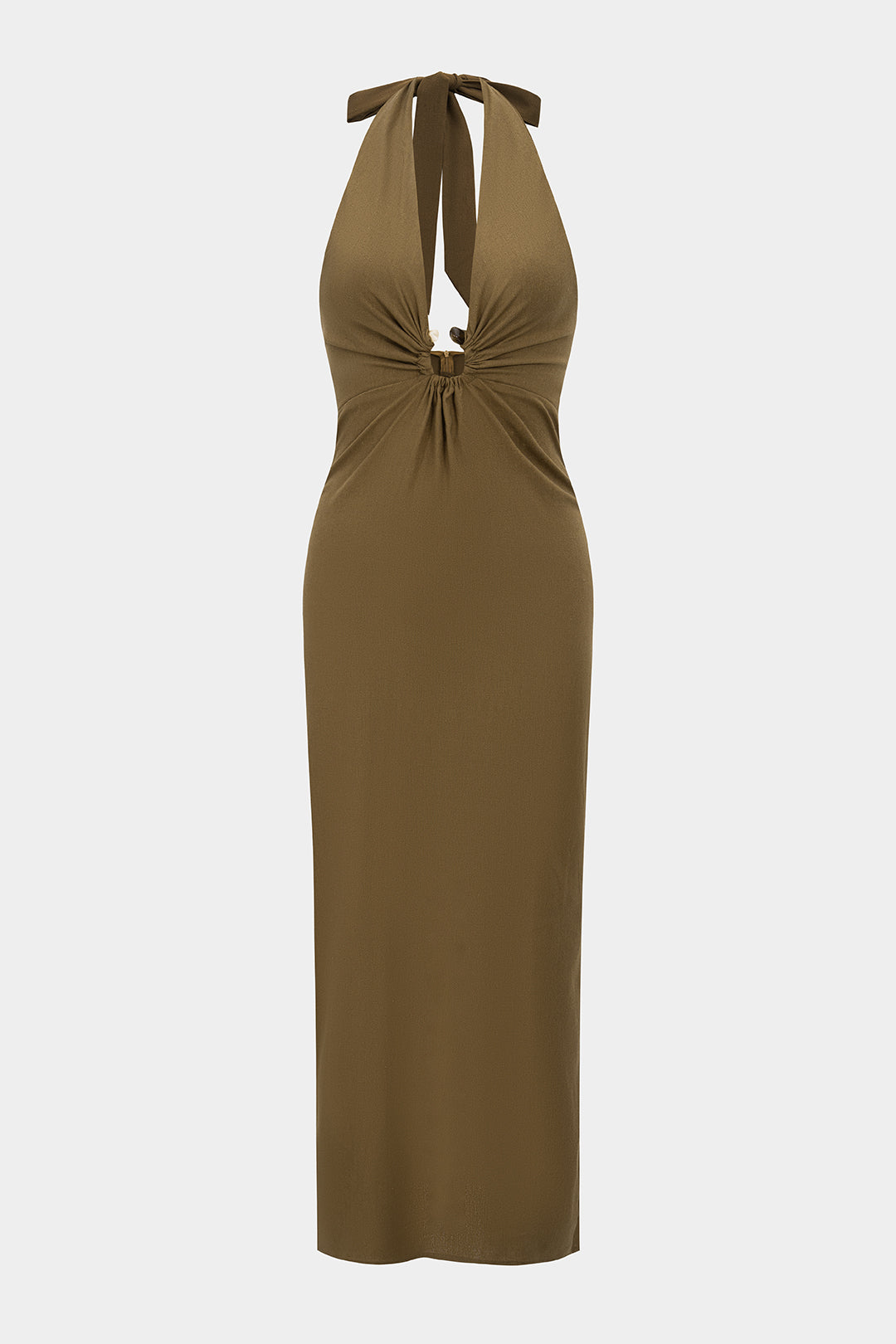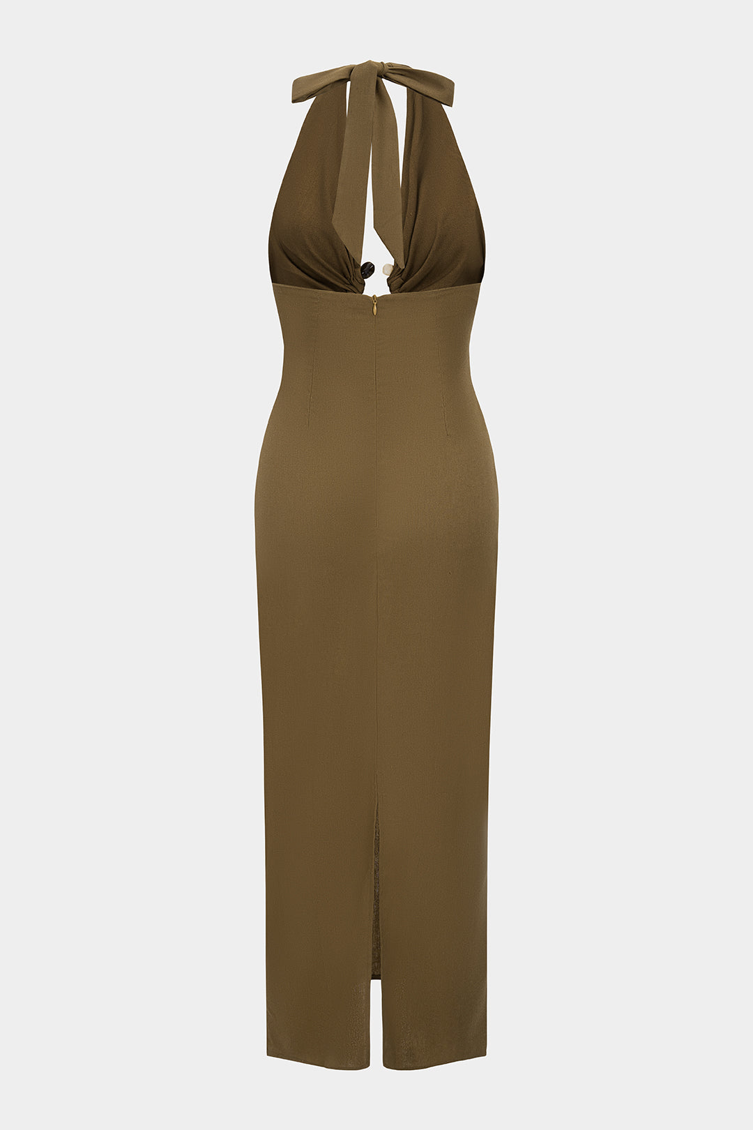 Satin Metallic V-Neck Halter Neck Tie-Back Sleeveless Maxi Dress