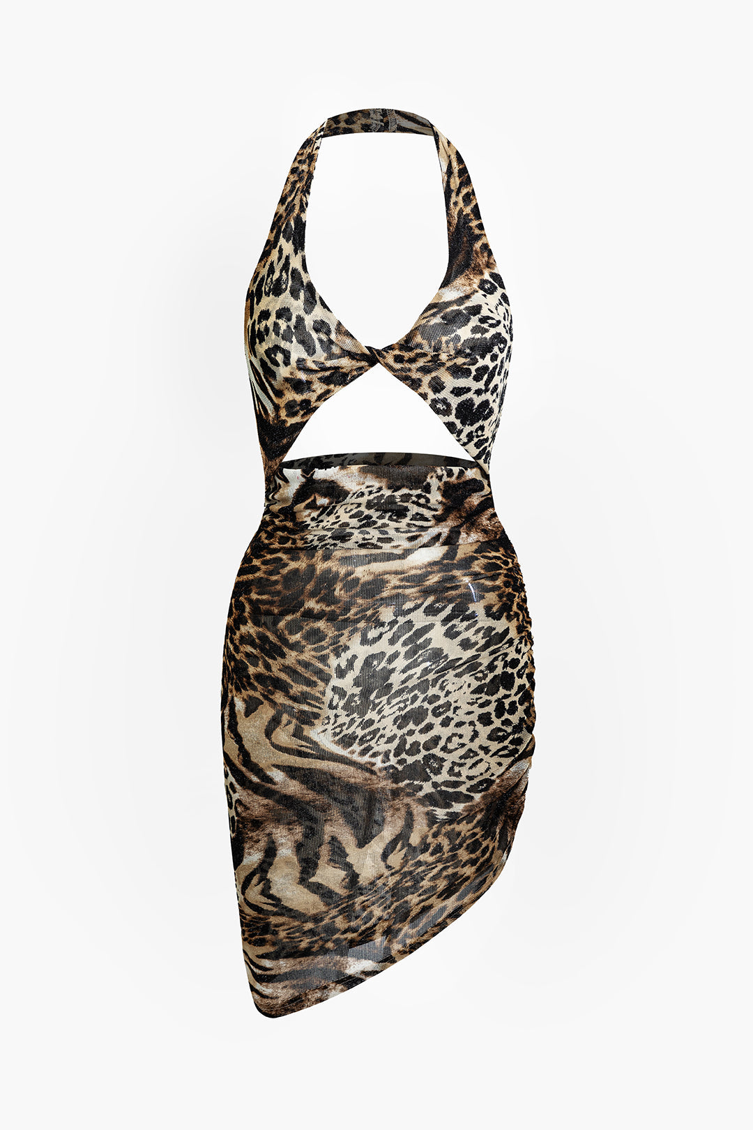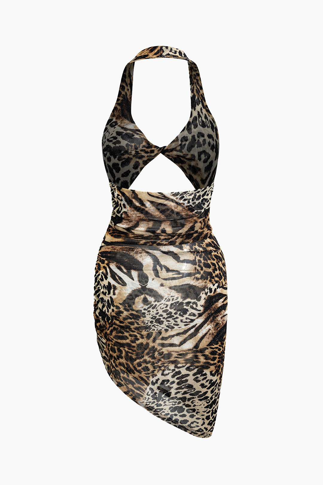 Leopard Print Twist Halter Backless Midi Dress