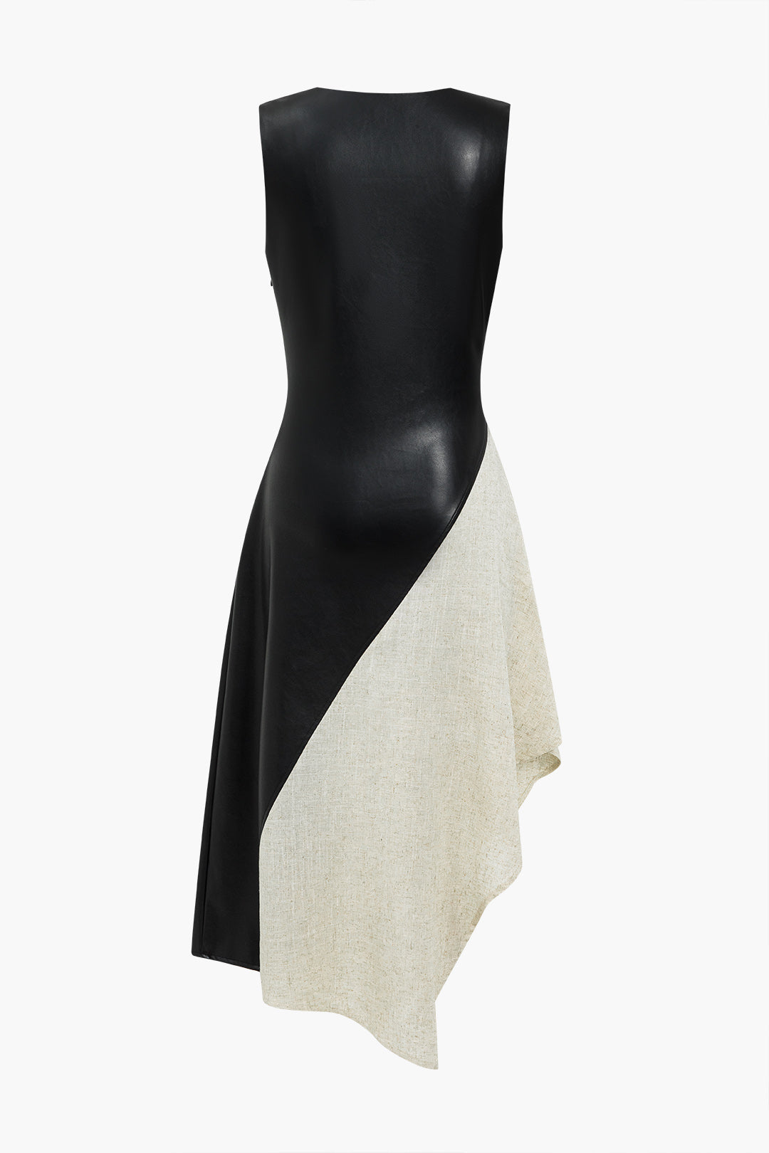 Color Block Draped Cowl Neck Asymmetrical Midi Dress