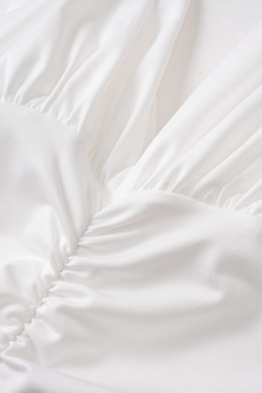 Contrast V-Neck Ruched Slit Sleeveless Midi Dress