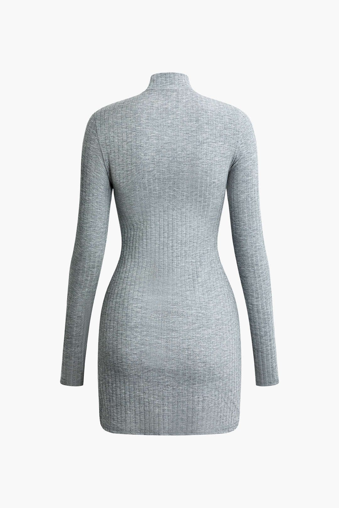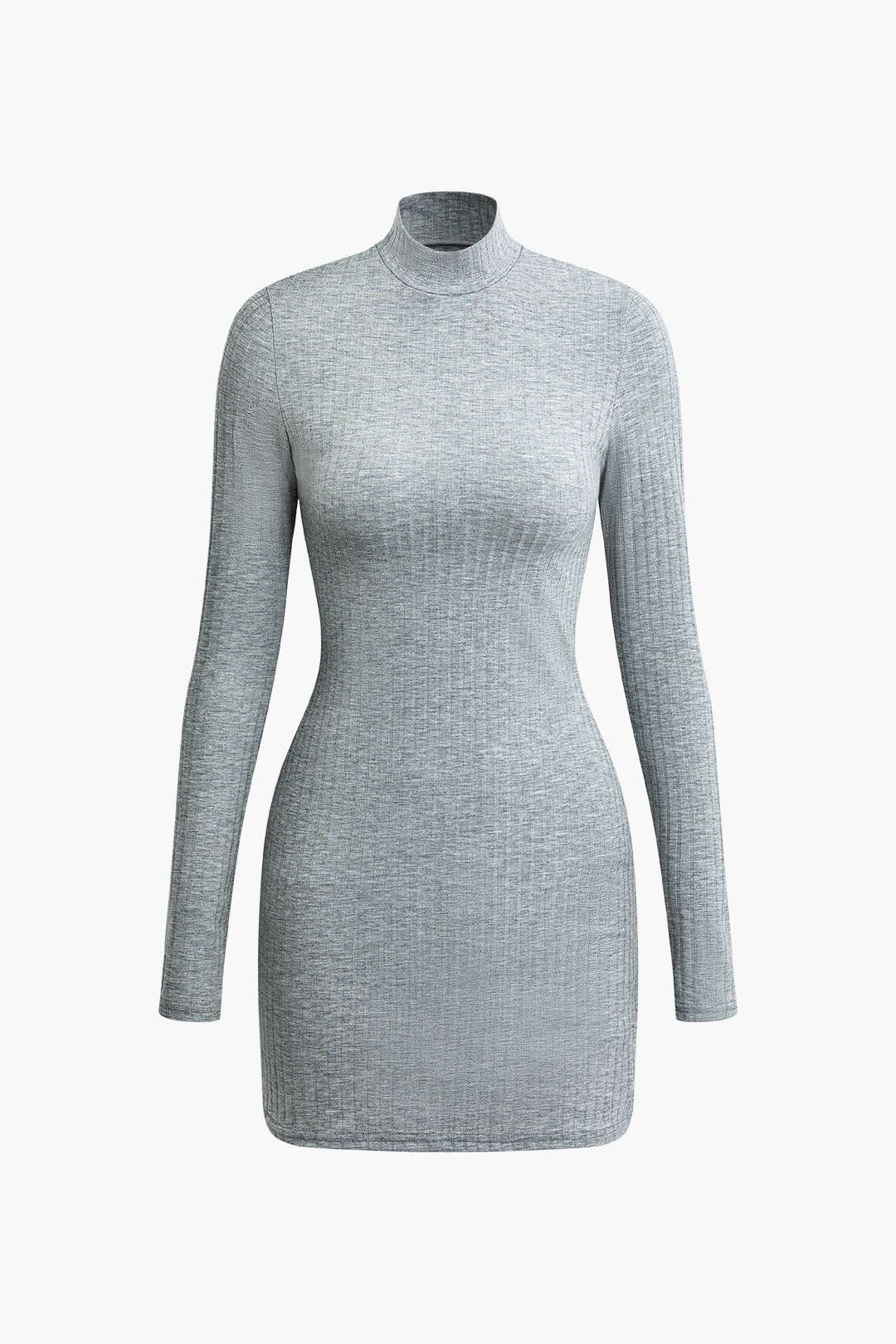 Ruched Mock Neck Slit Long Sleeve Mini Dress