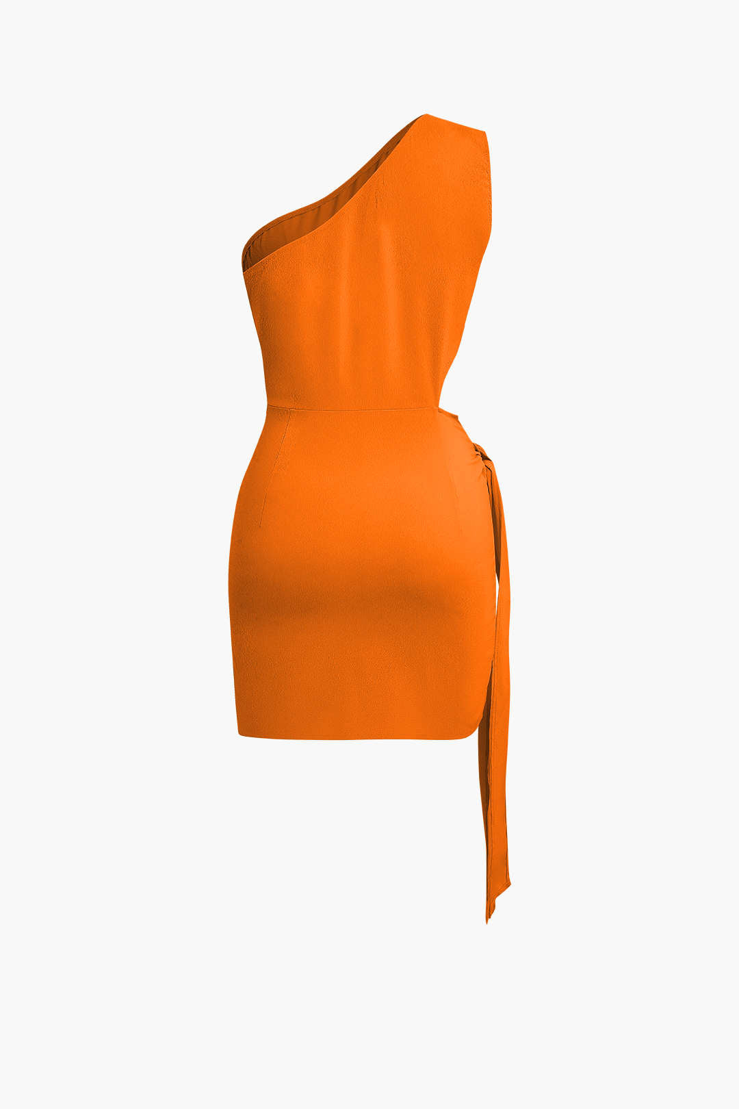 Asymmetrical Cut Out Ruched Tie Mini Dress