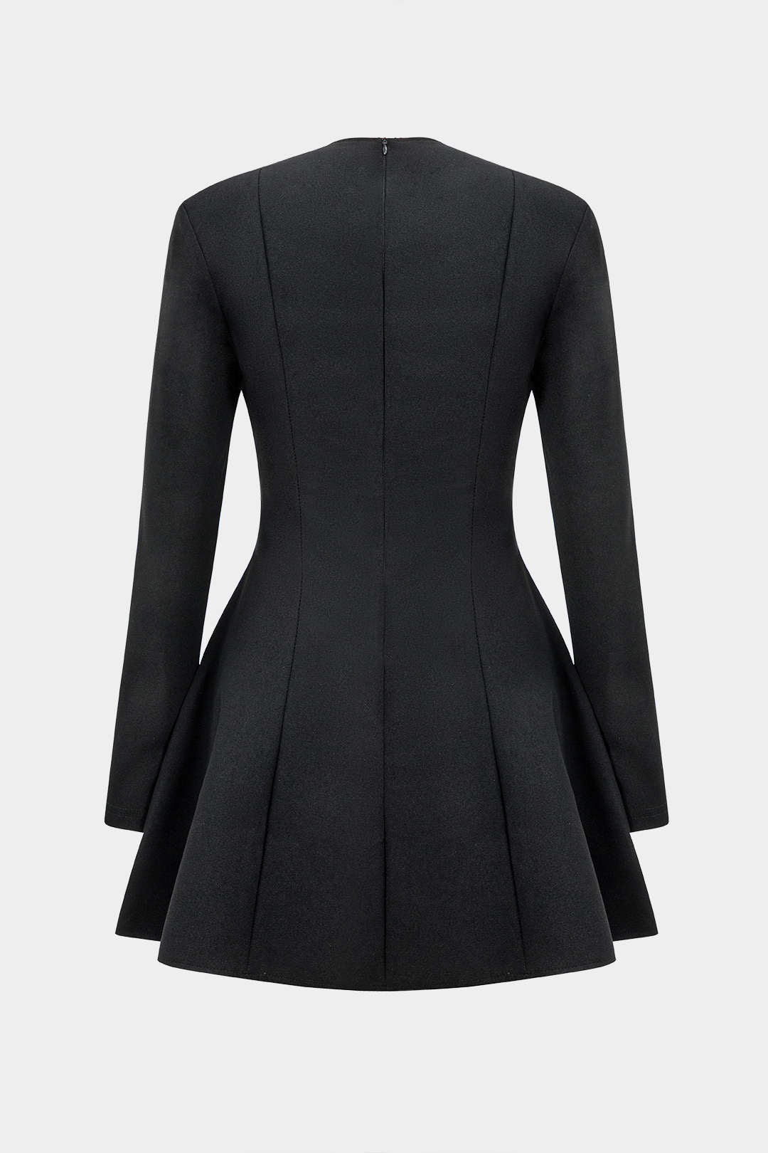 Solid V-neck Fake Pockets And Zipper Mini Dress