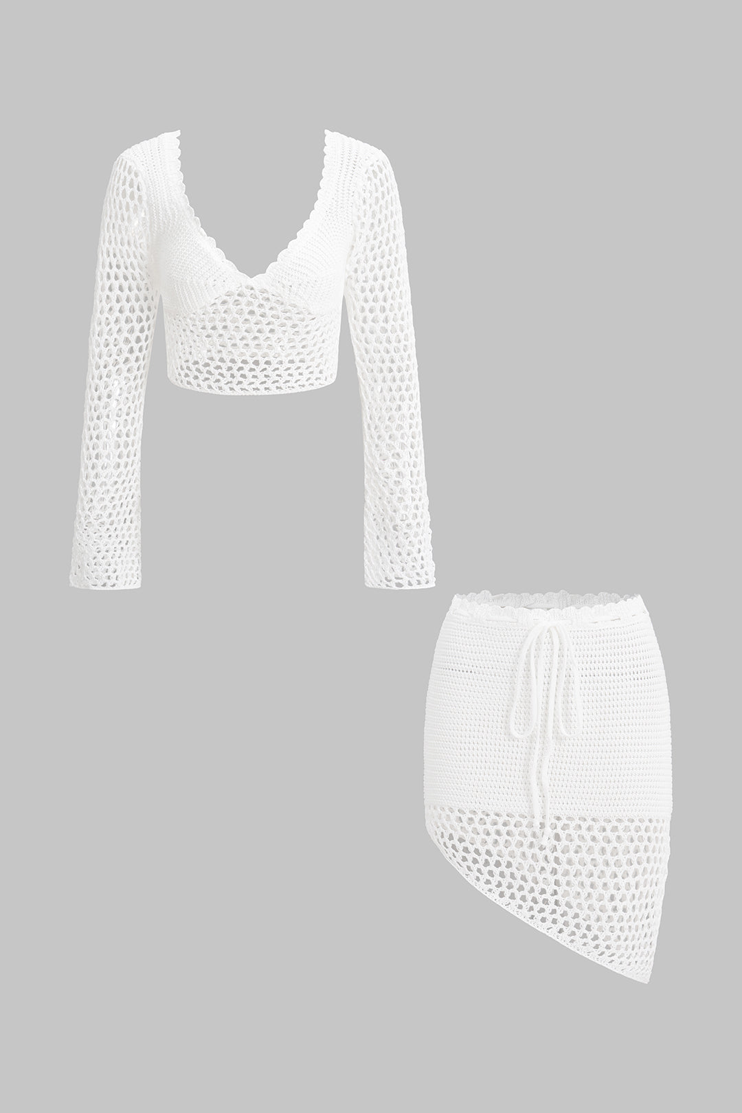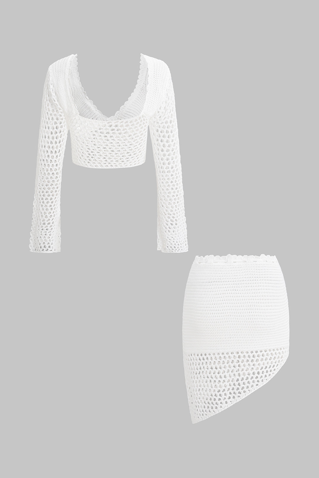 Knit Cut Out Long Sleeve Crop Top And Tie-Up Skirt Set