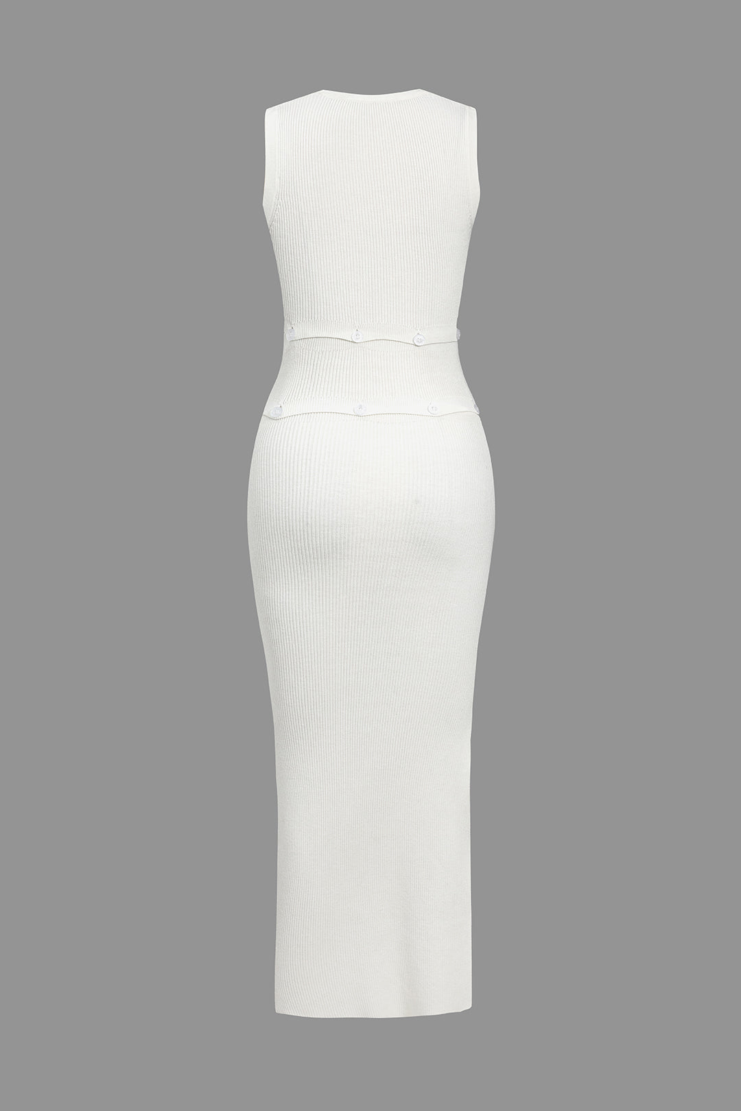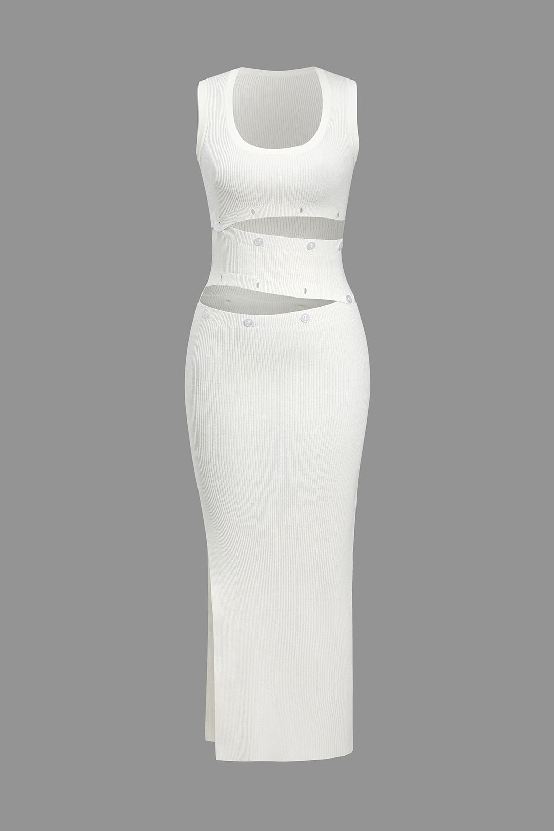 Solid Knit Button Cut Out Slit Dress