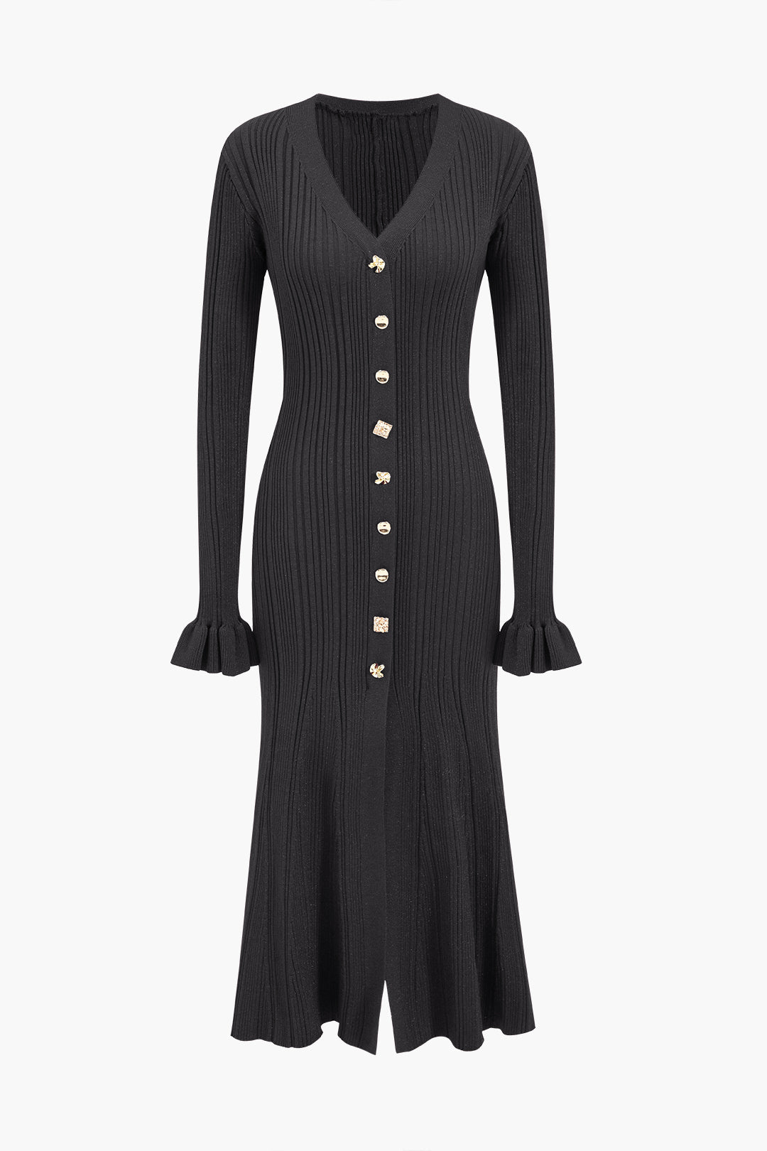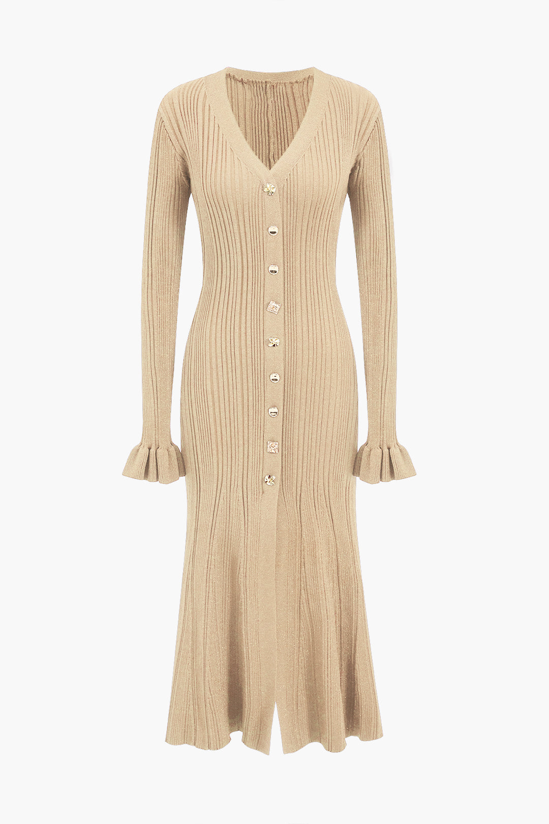 Knit Button V-Neck Dress