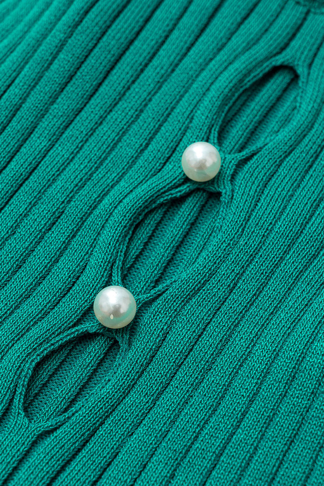 Knit Hollow Out Pleated Ruffle Sleeveless Dress