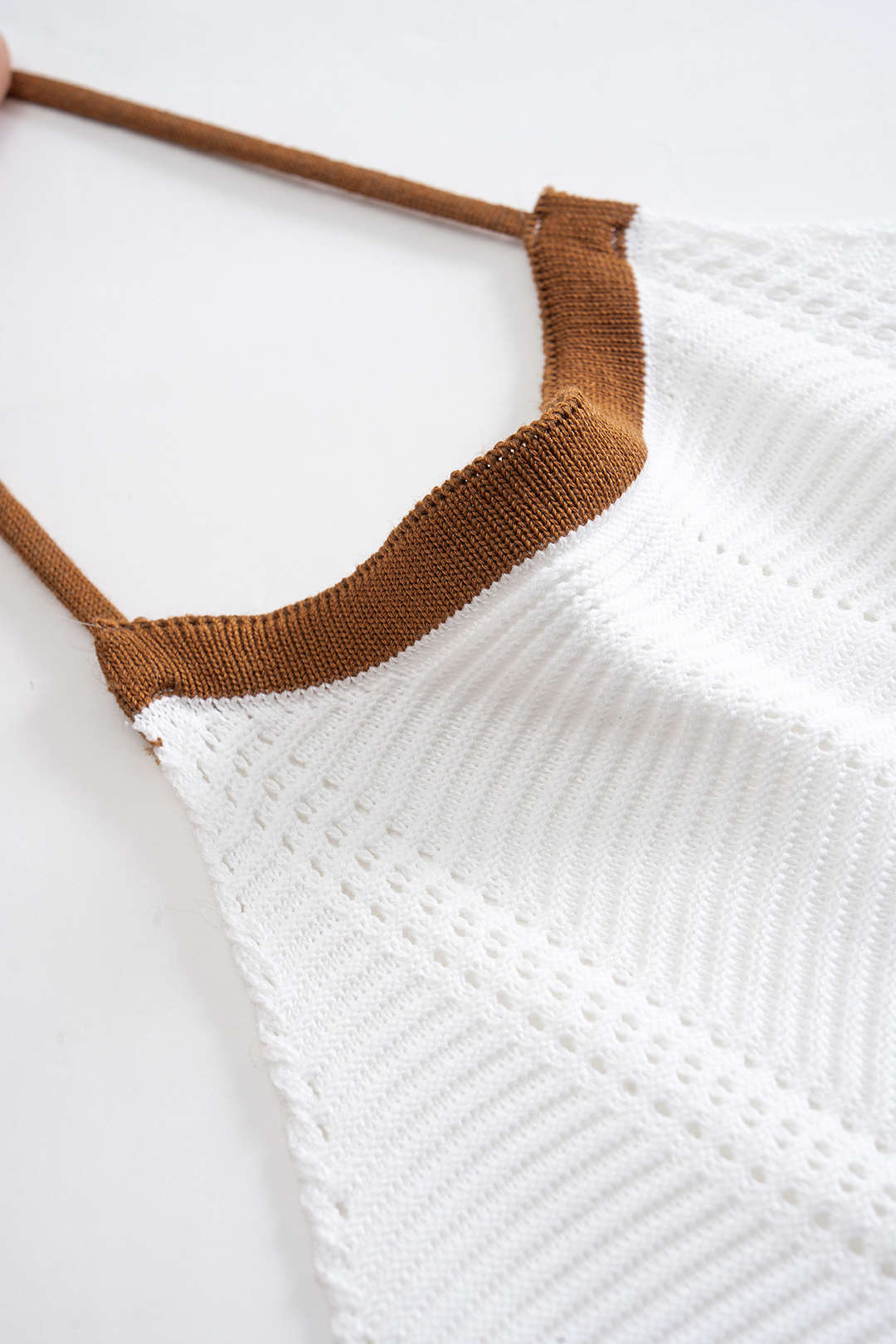 Knit Contrast Backless Sleeveless Halter Neck Slit Dress
