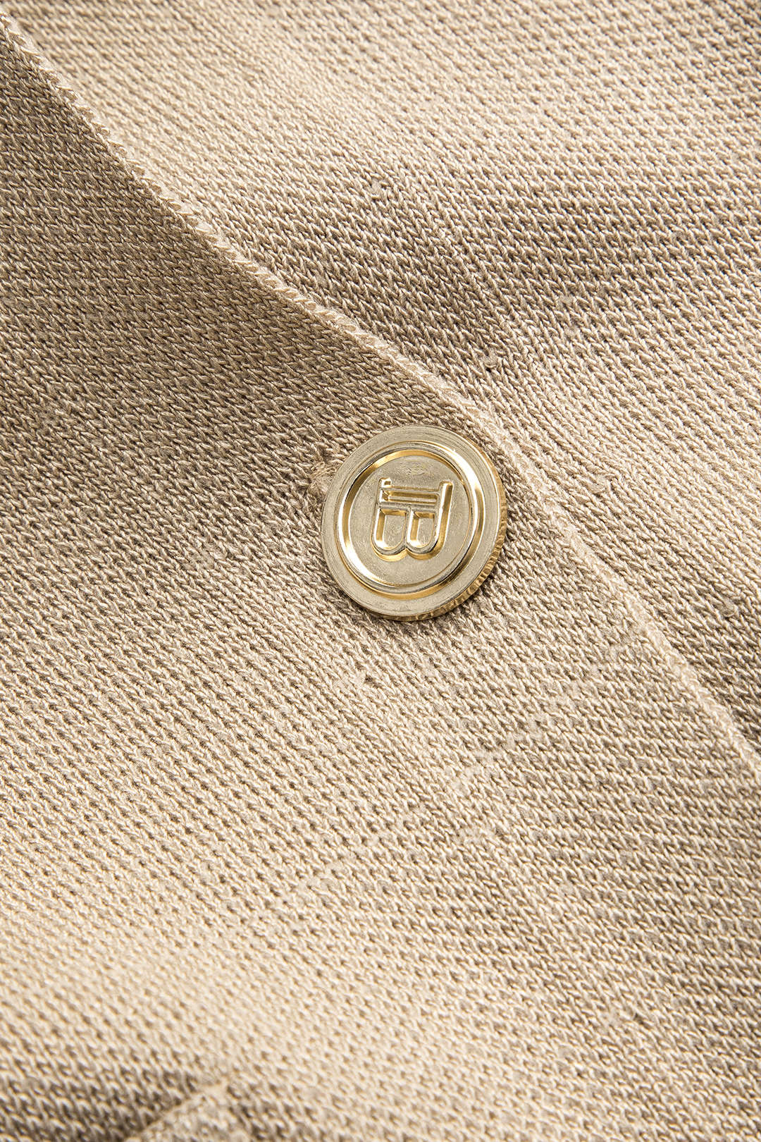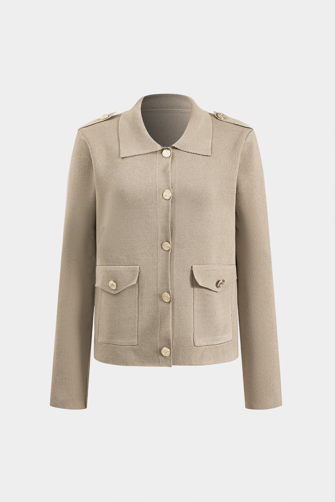 Knitted Button Flap Pocket Long Sleeve Top And Pleated Wide Leg Trousers Set