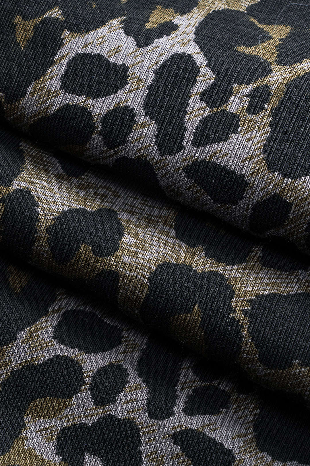 Leopard Print Denim Pleated Patchwork Button Pocket Wide Leg Jeans