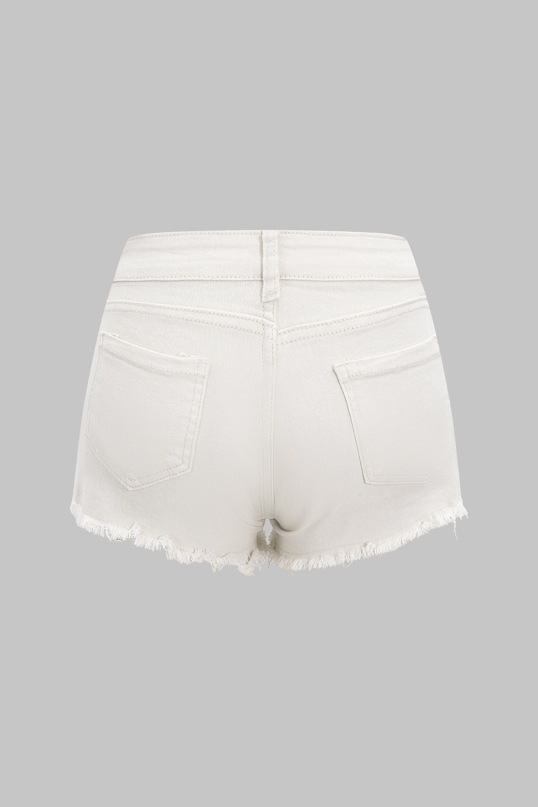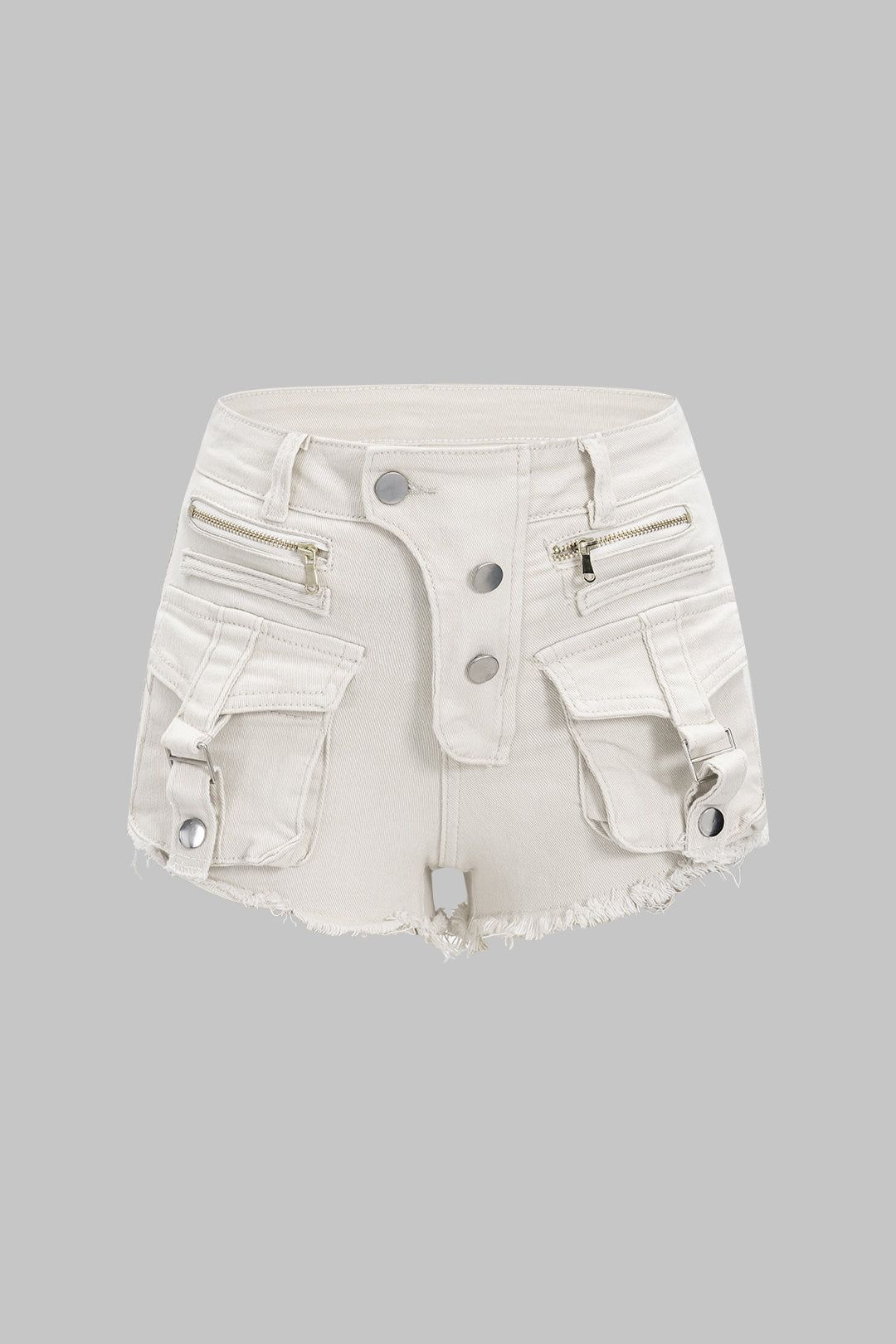 Denim Asymmetrical Zipper Pocket High Waist Shorts