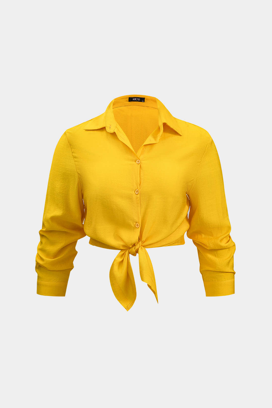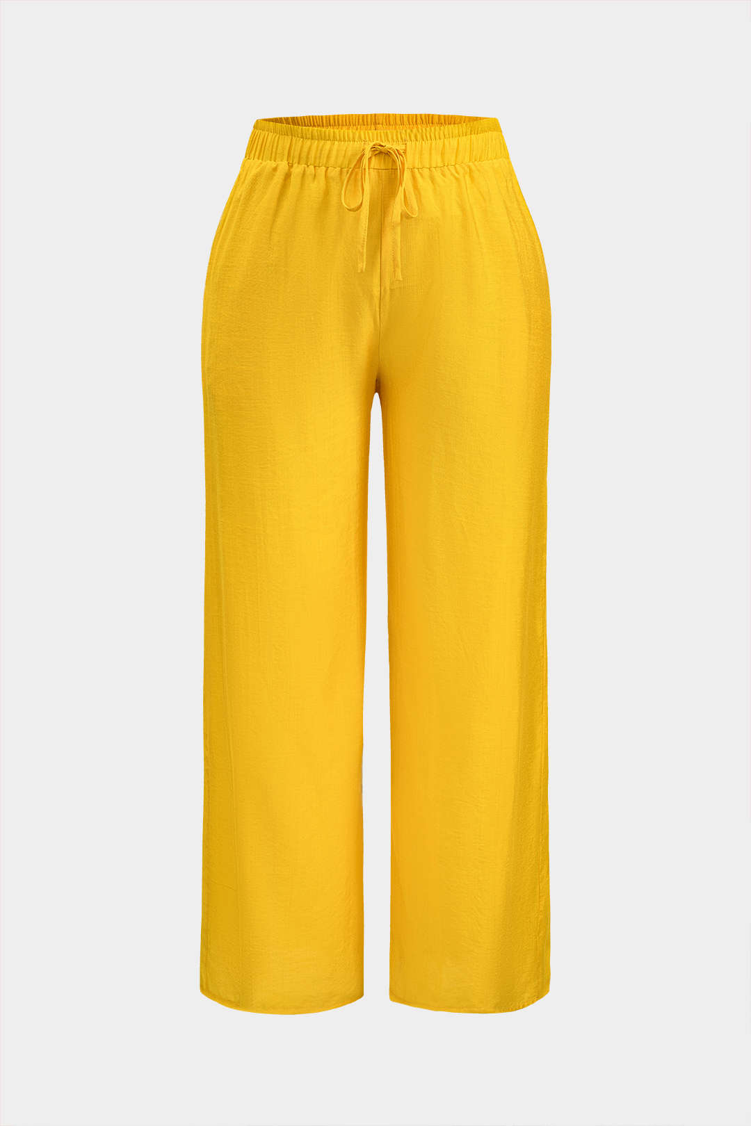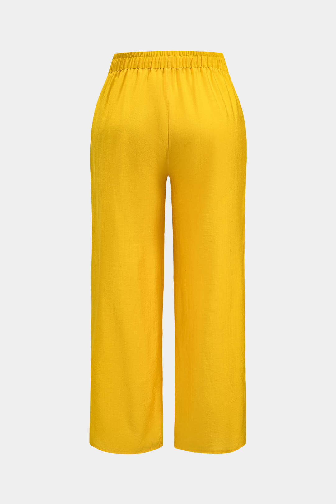 Plus Size Tie Front Shirt And Wide Leg Pants Set