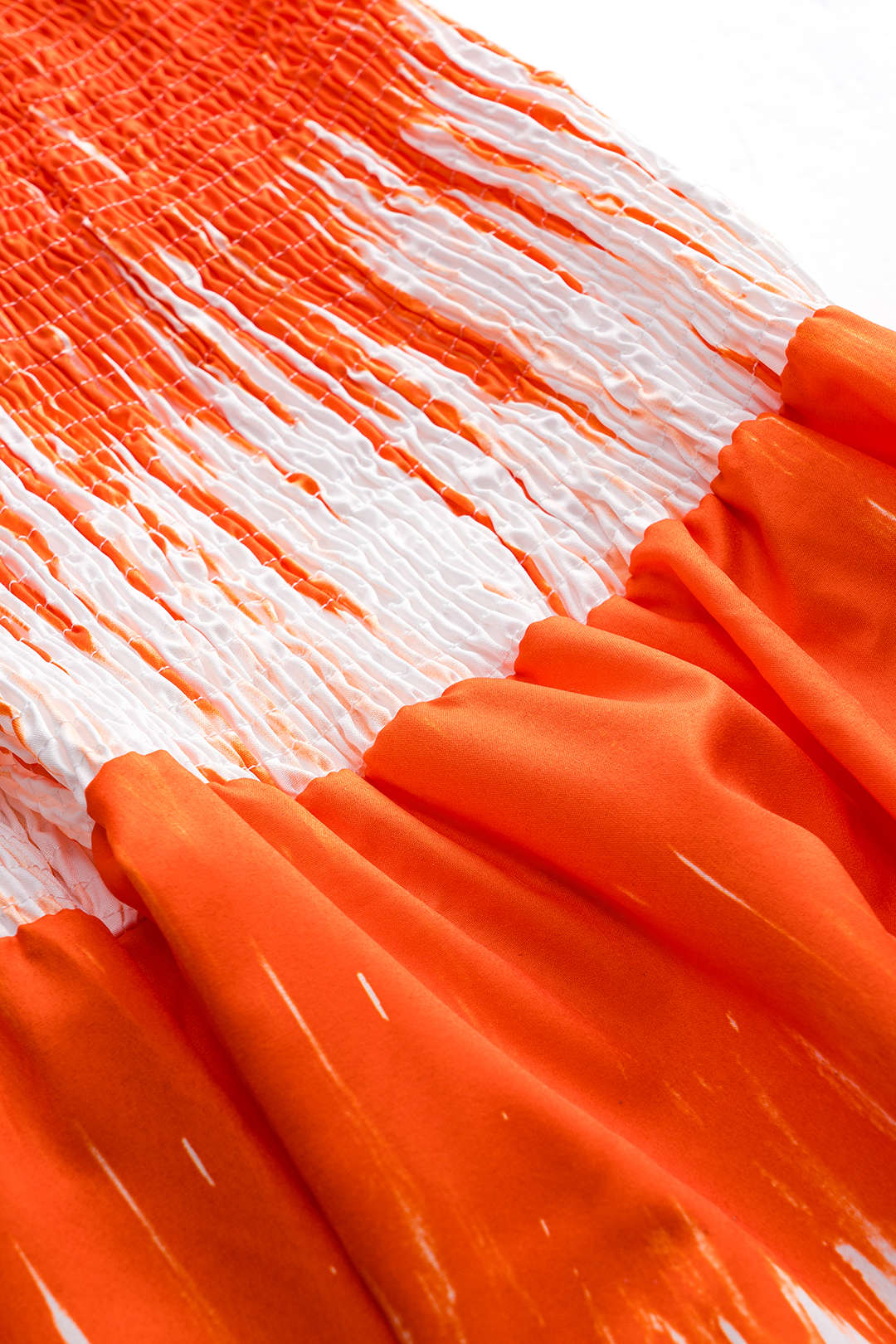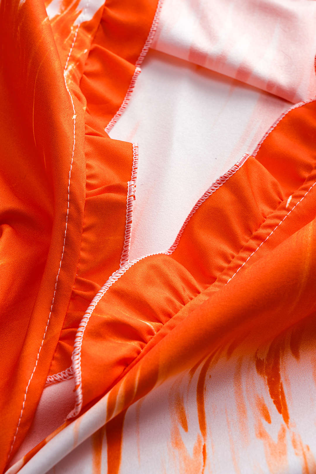 Tropical Pattern Ruffle V-Neck Tie Front Top And Ruched High Waist Wide Leg Pants Set