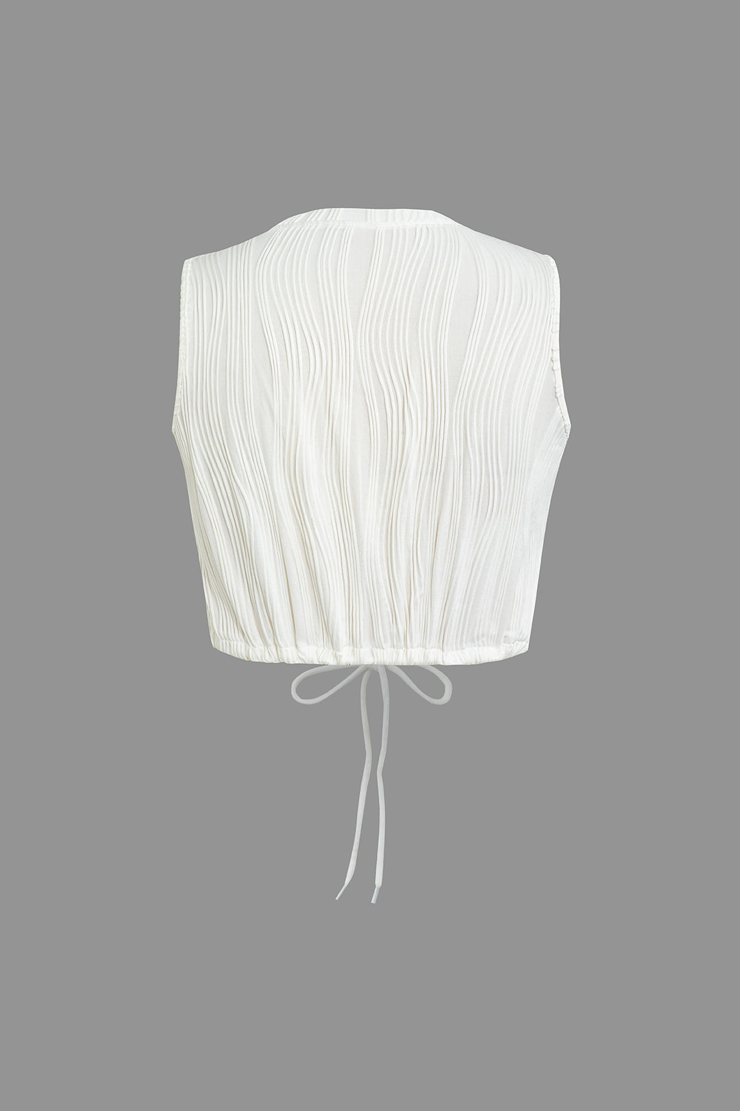 Textured Sleeveless Crop Top And Drawstring Shorts Set