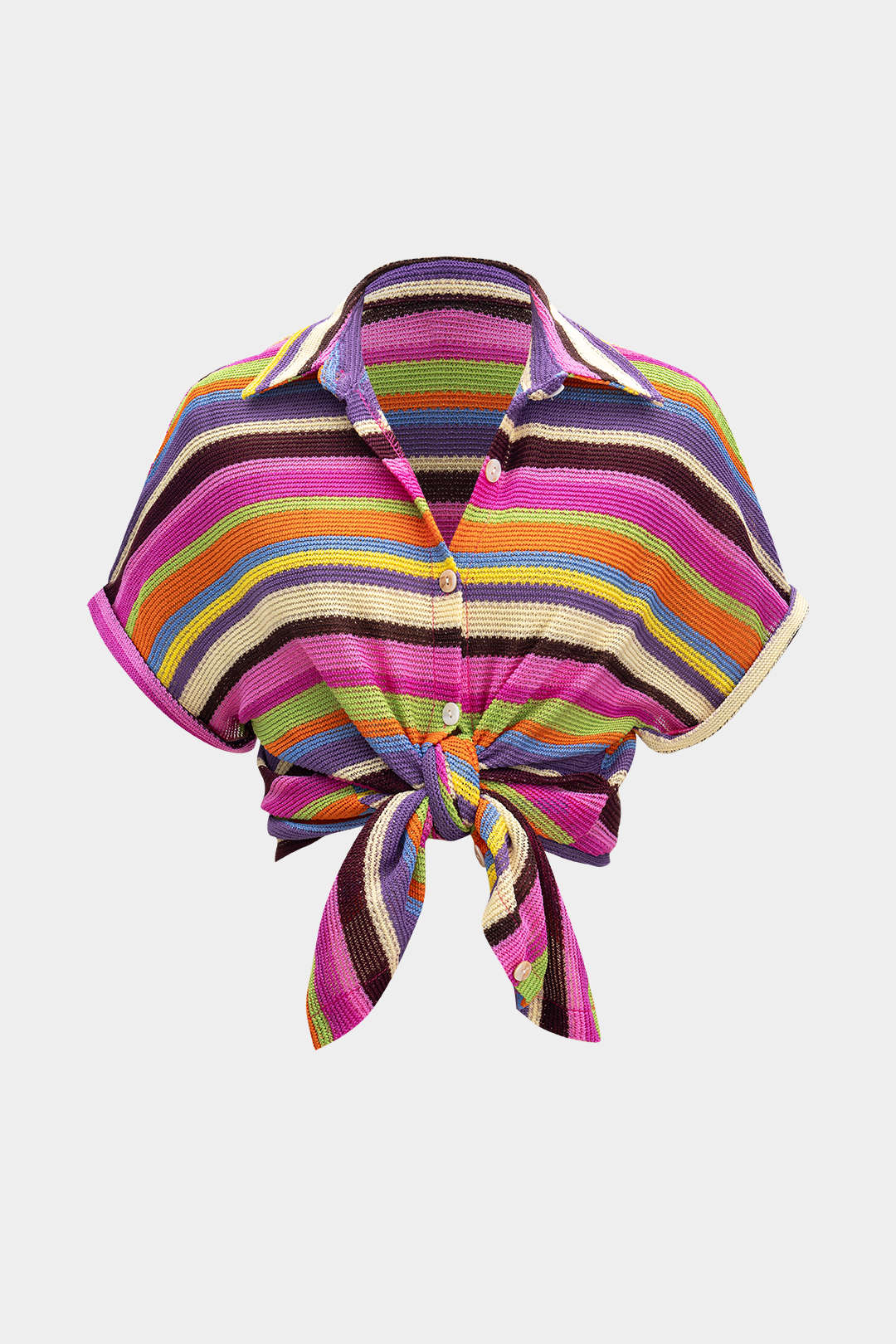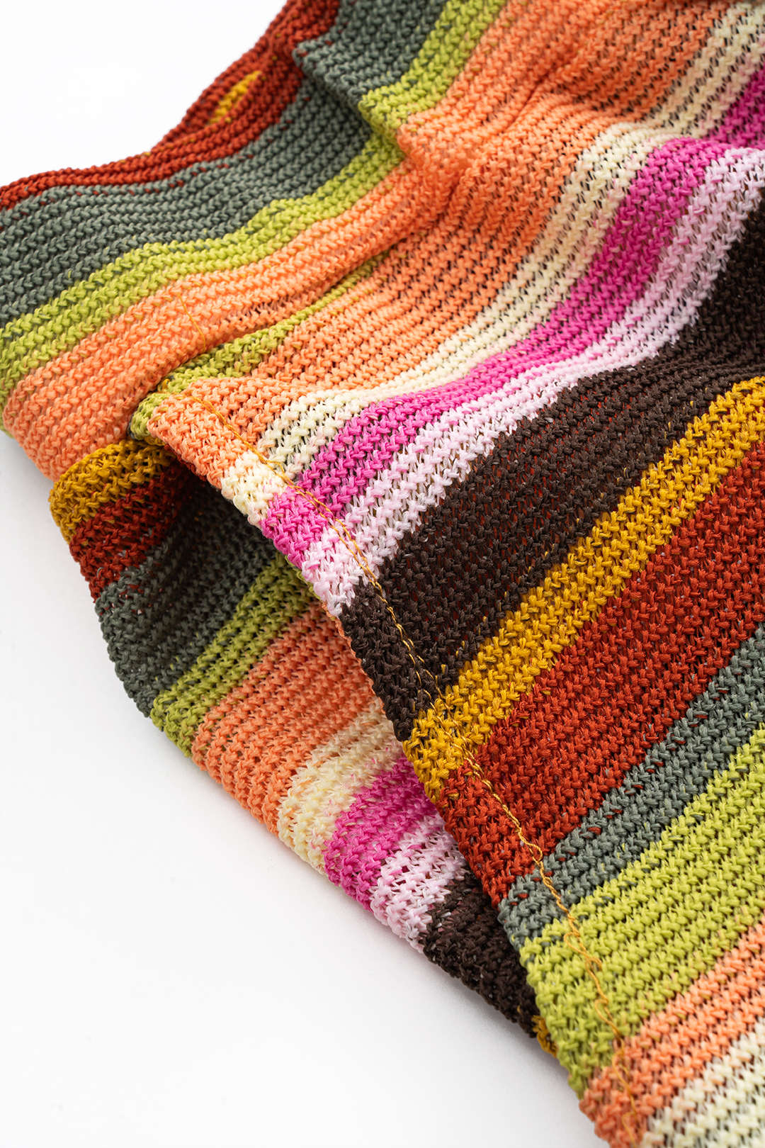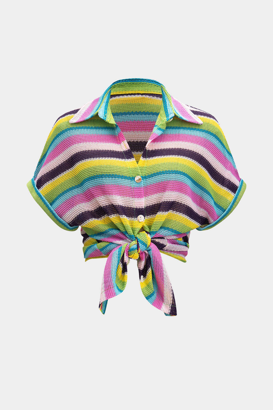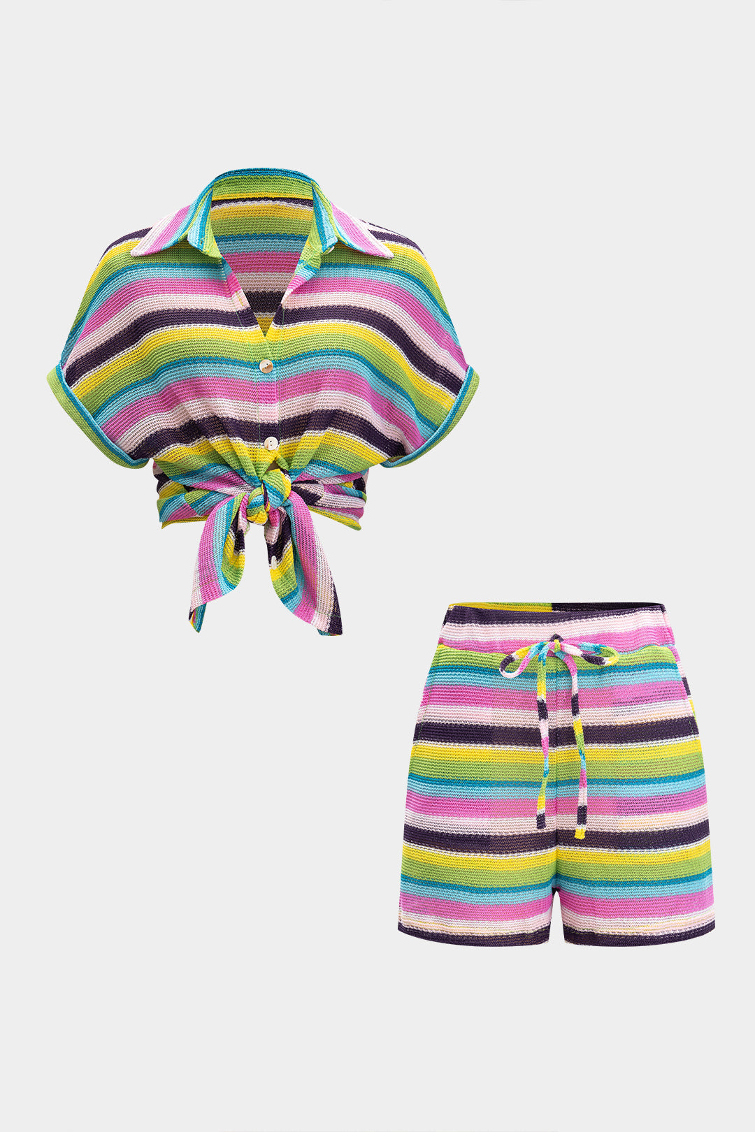 Knit Contrast V-Neck Top And Drawstring Shorts Set