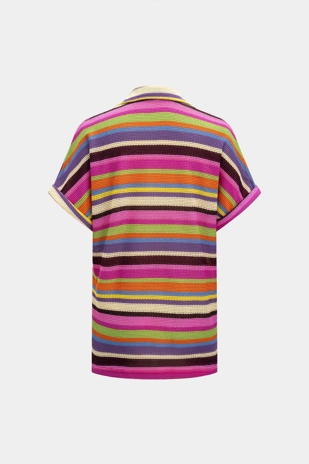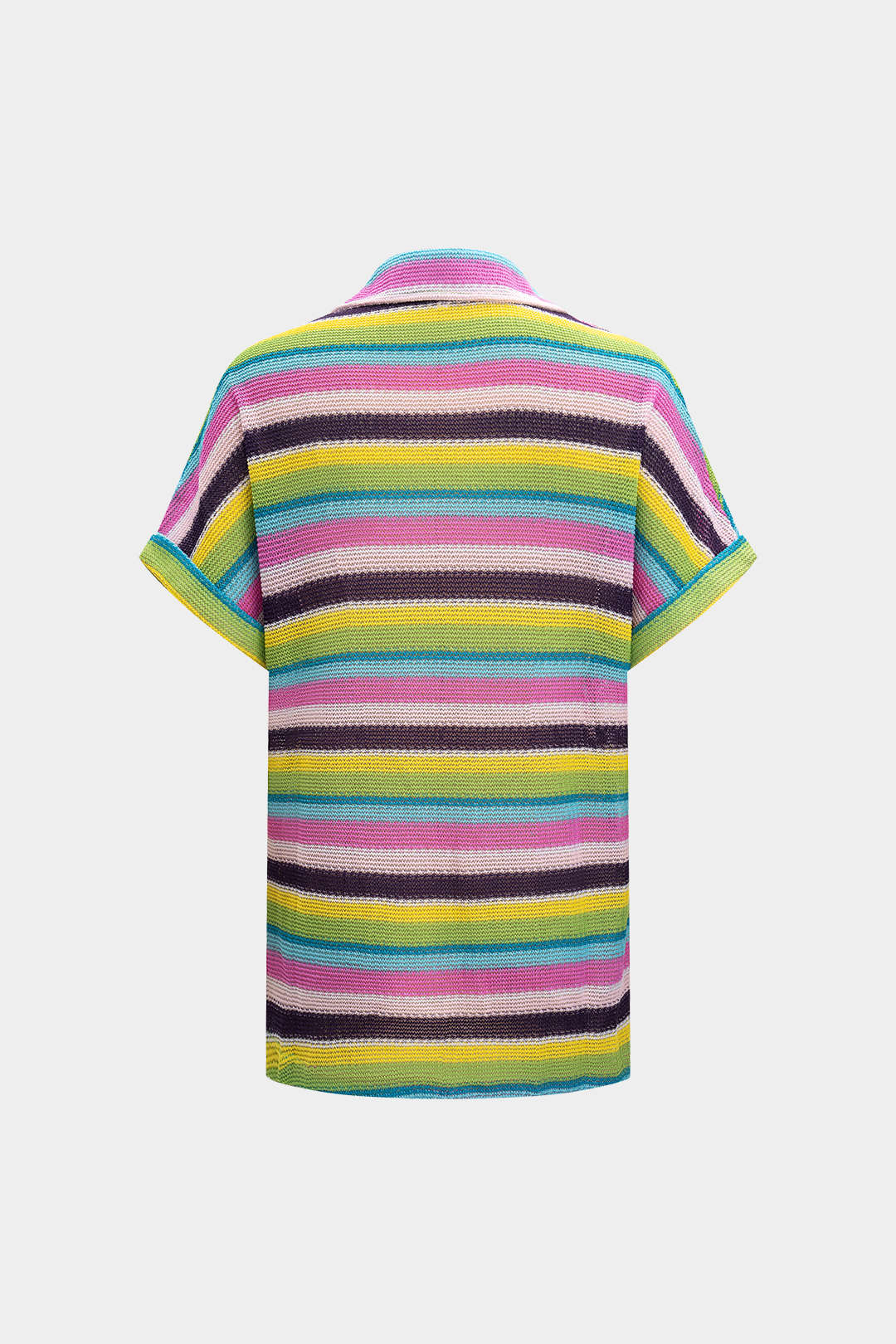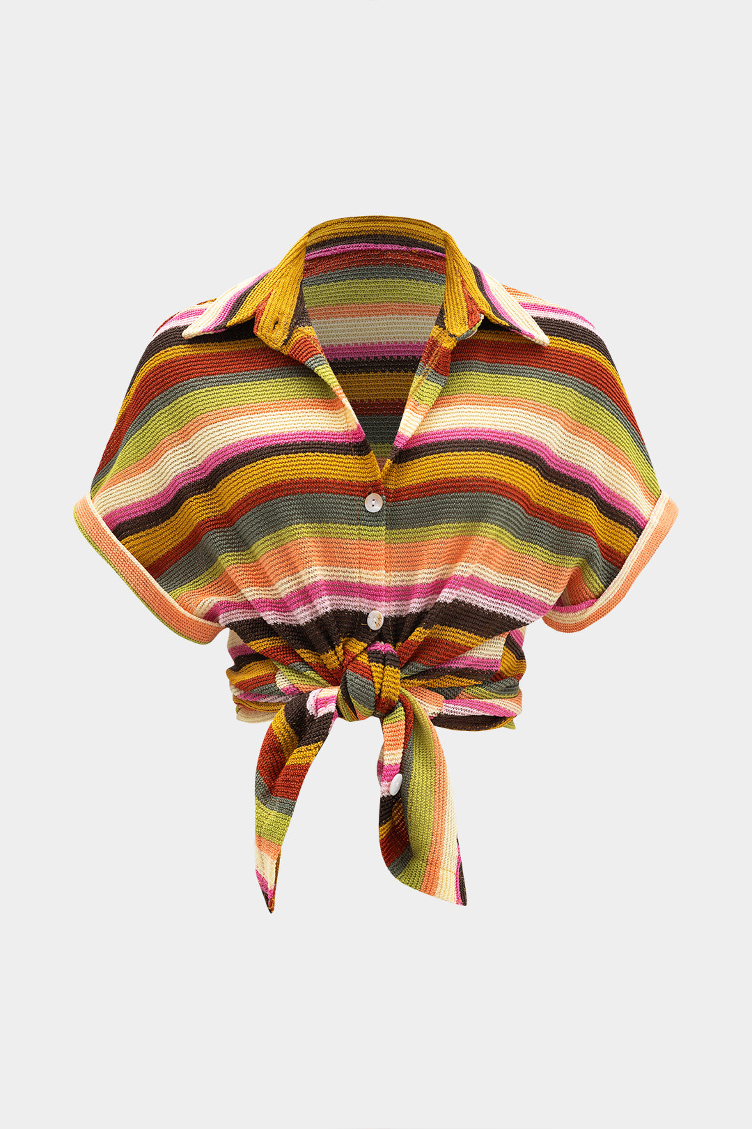 Knit Contrast V-Neck Top And Drawstring Shorts Set
