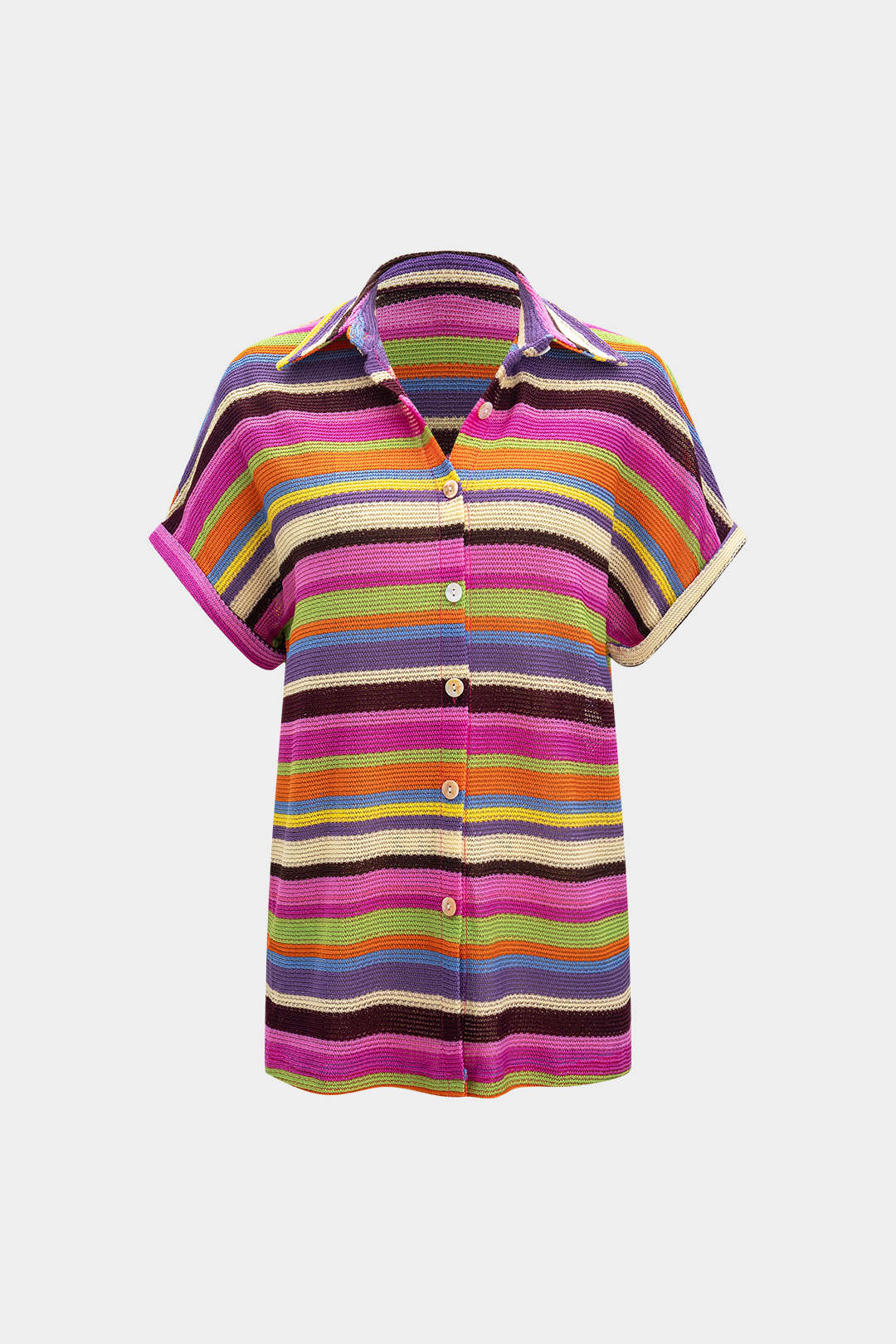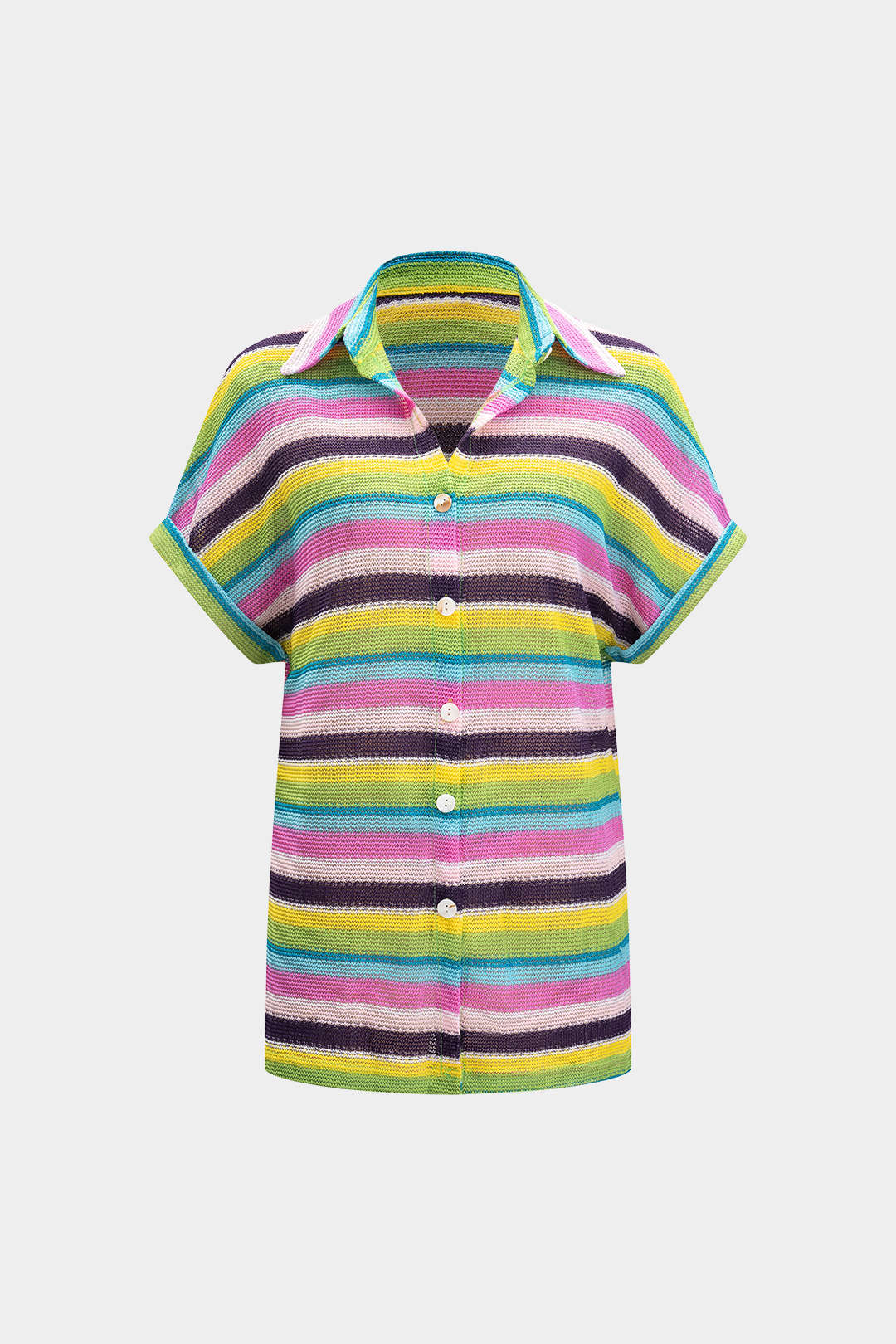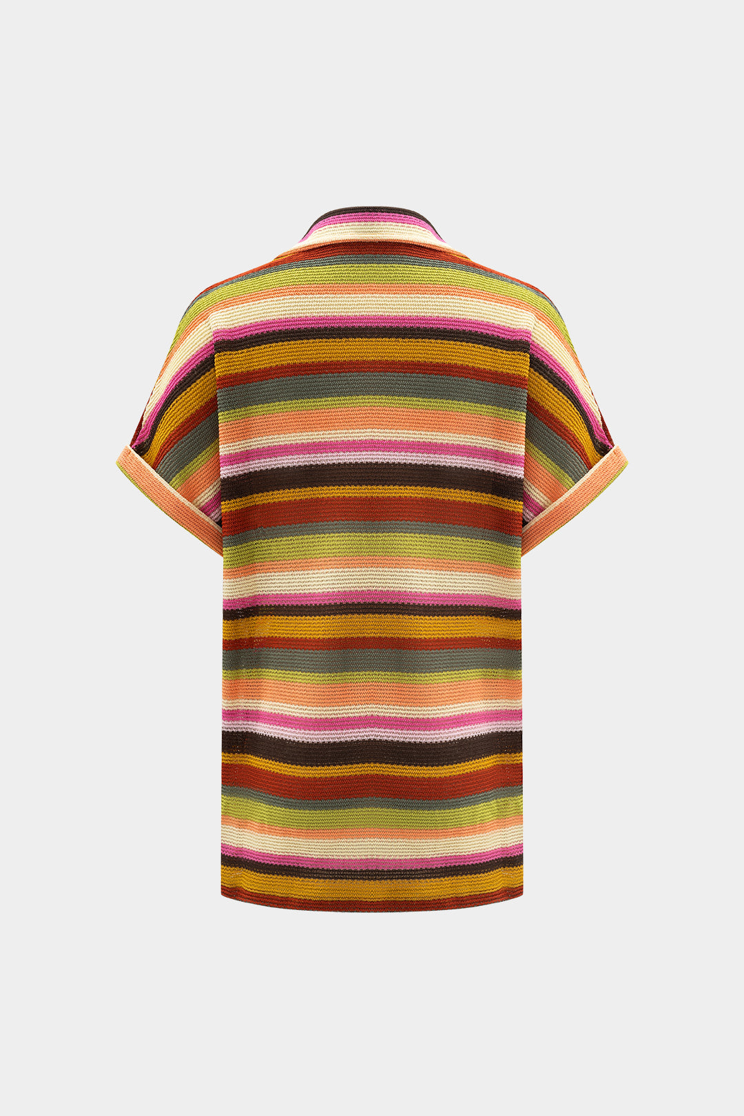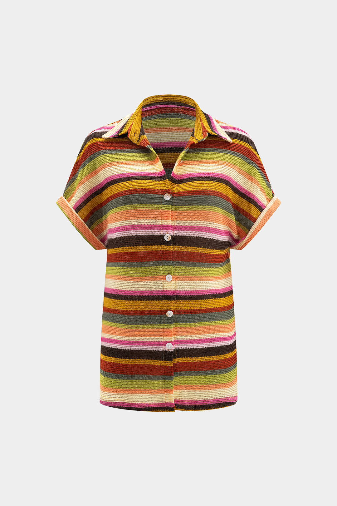 Knit Contrast V-Neck Top And Drawstring Shorts Set