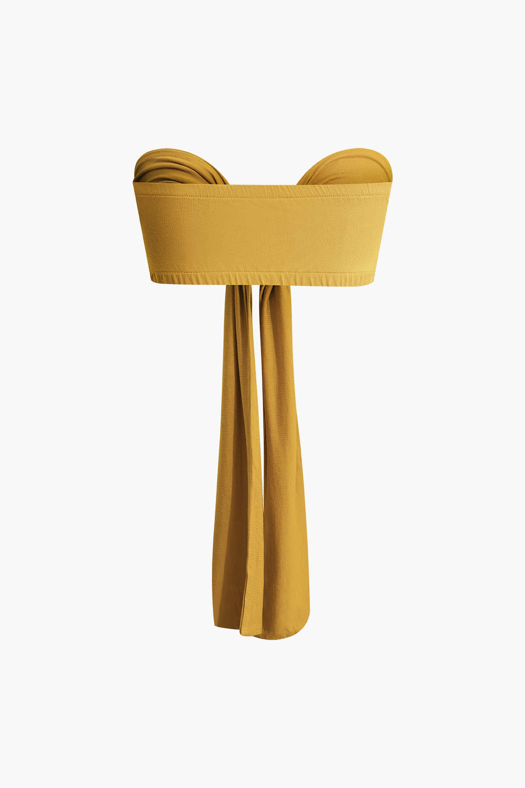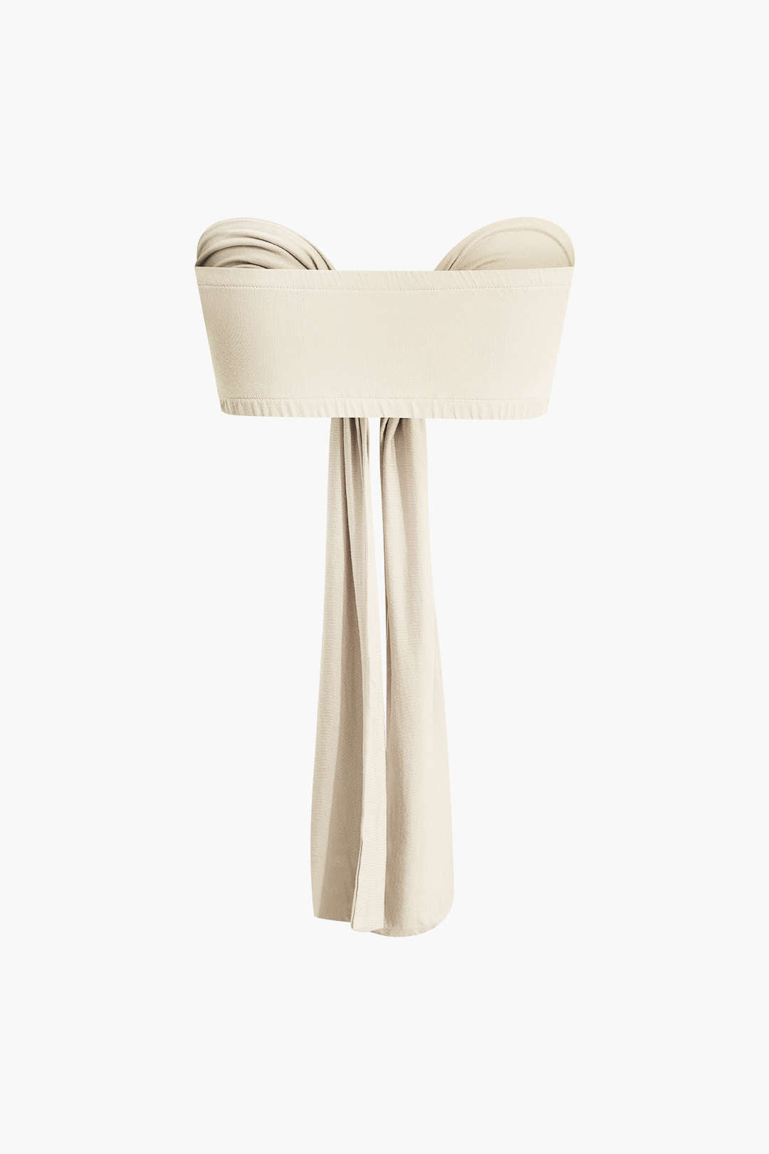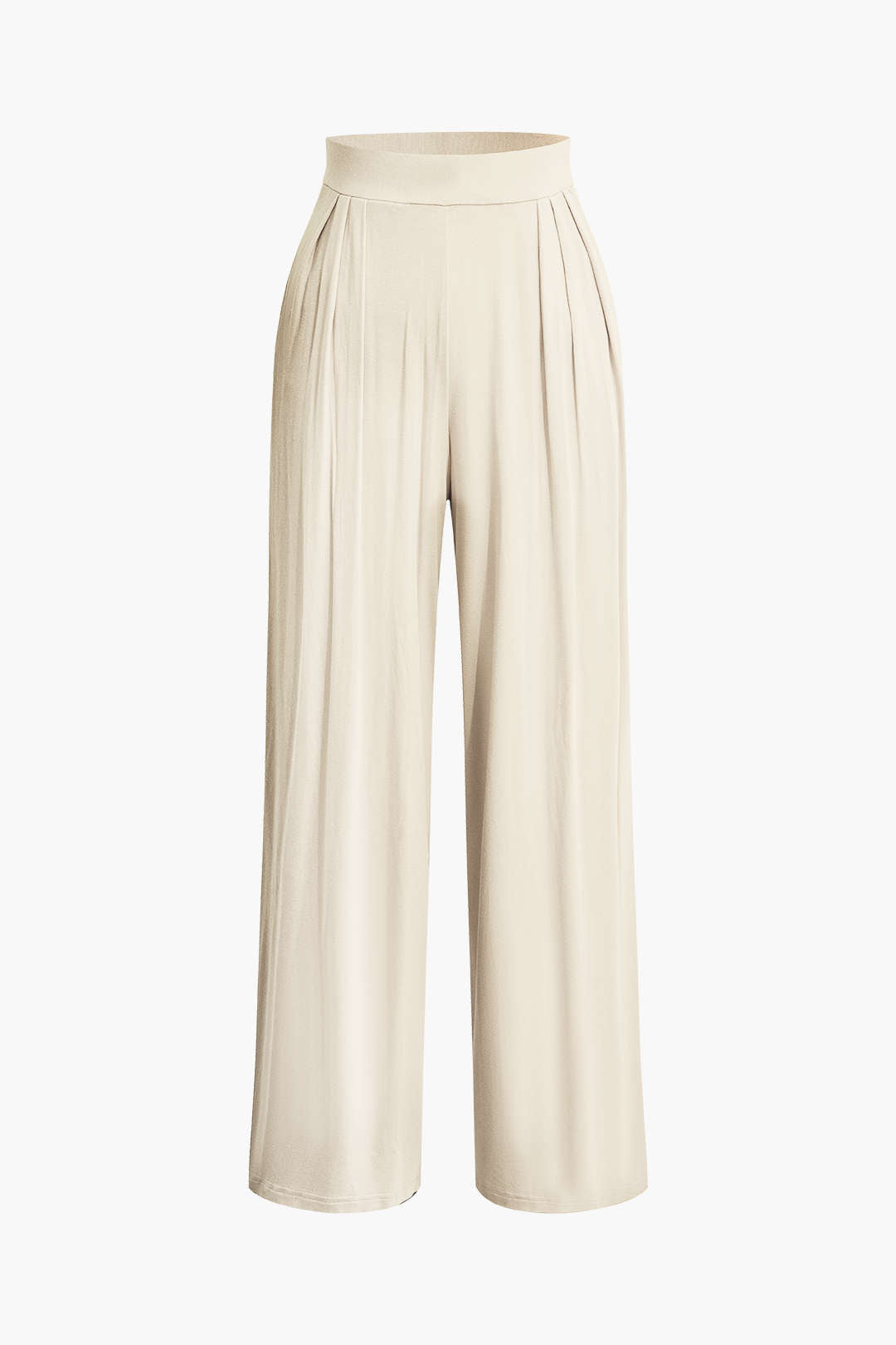 Tie Knot Front Ruched Tube Top And Pleated Wide Leg Pants