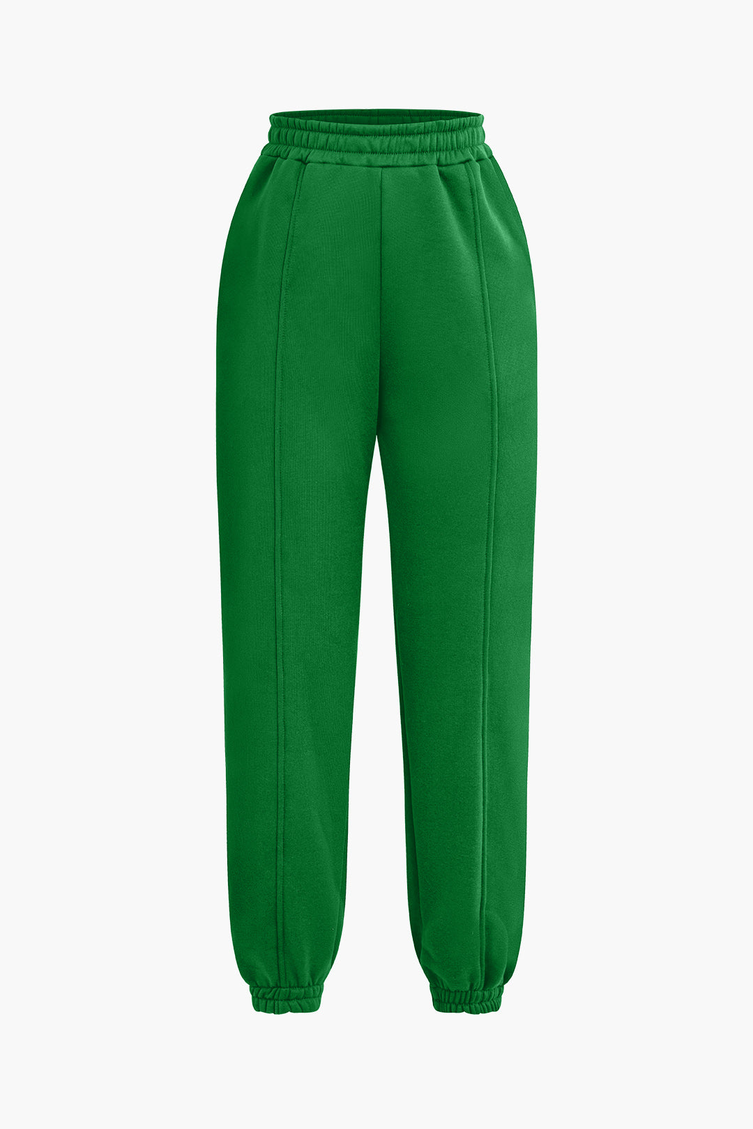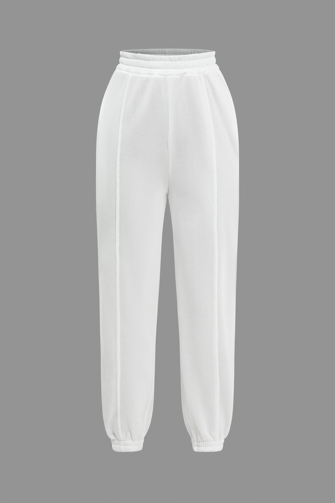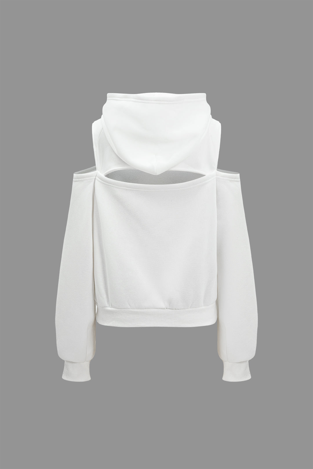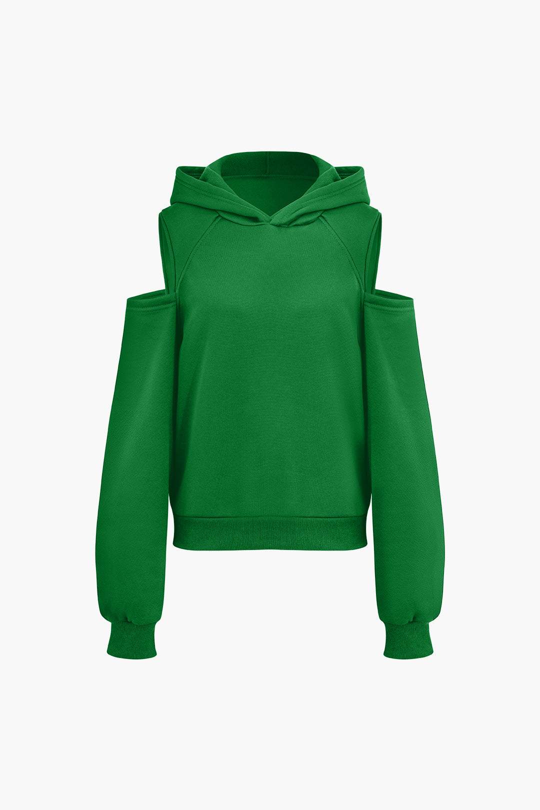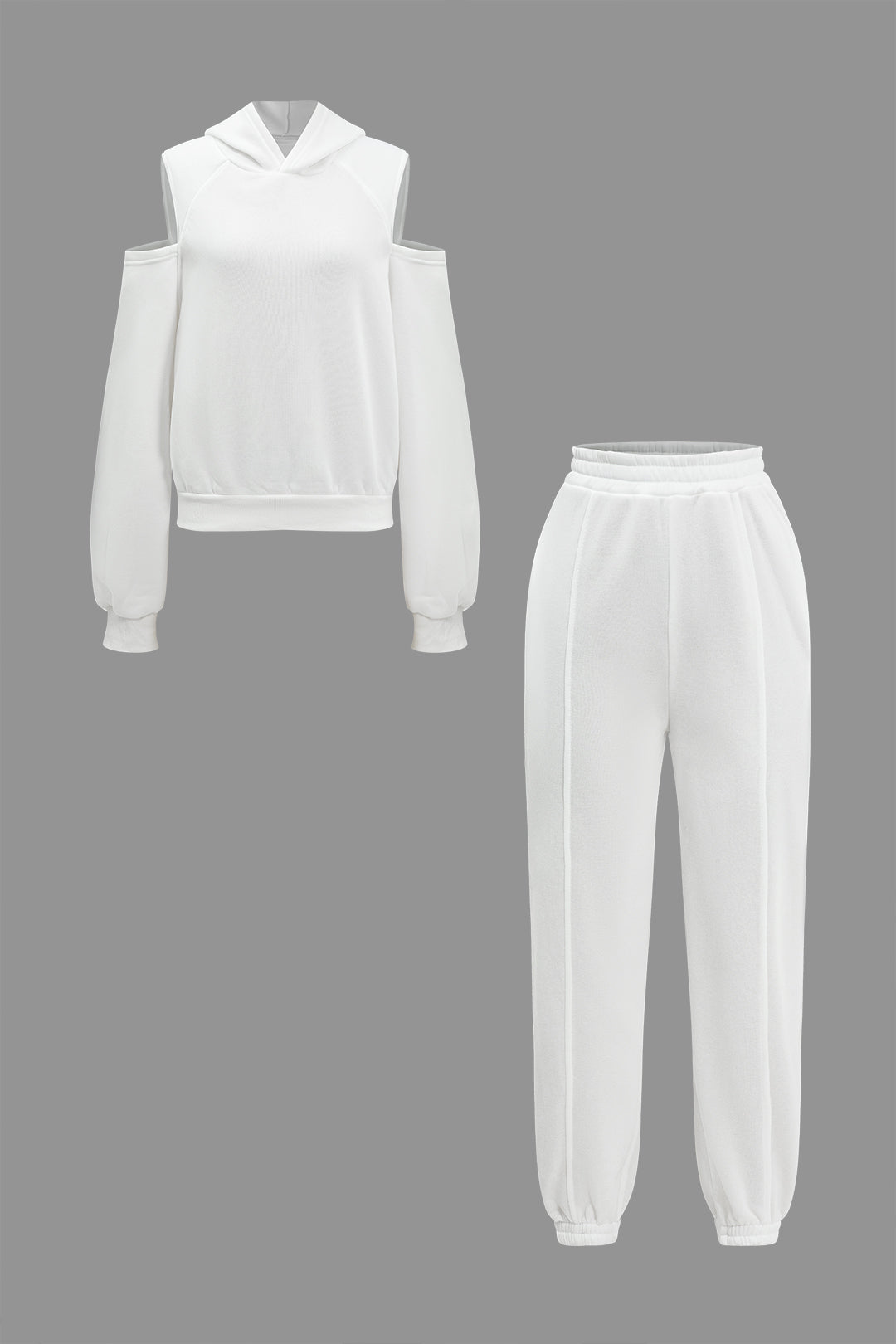 Solid Hooded Cut Out Sweatshirt And Elastic Pants Set