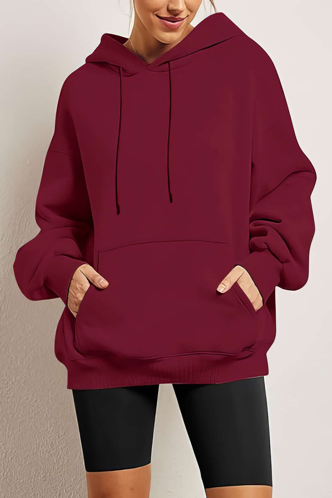 Solid Drawstring Pocket Hoodie