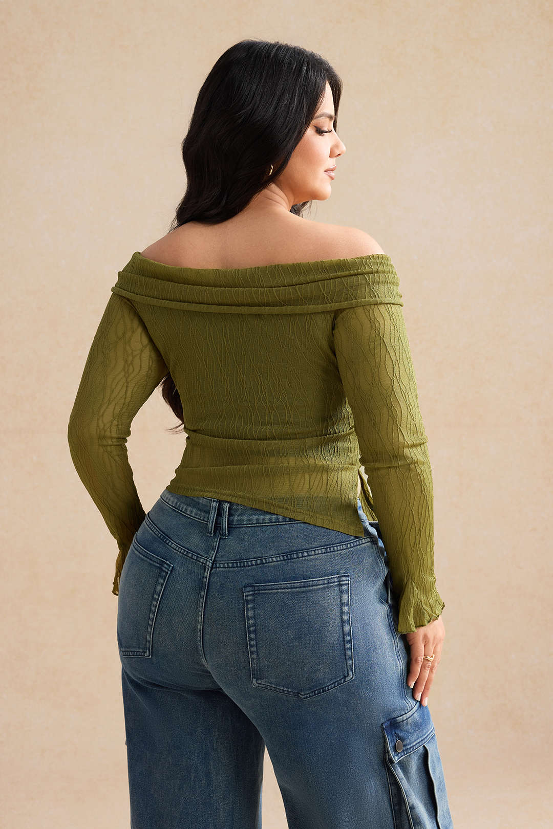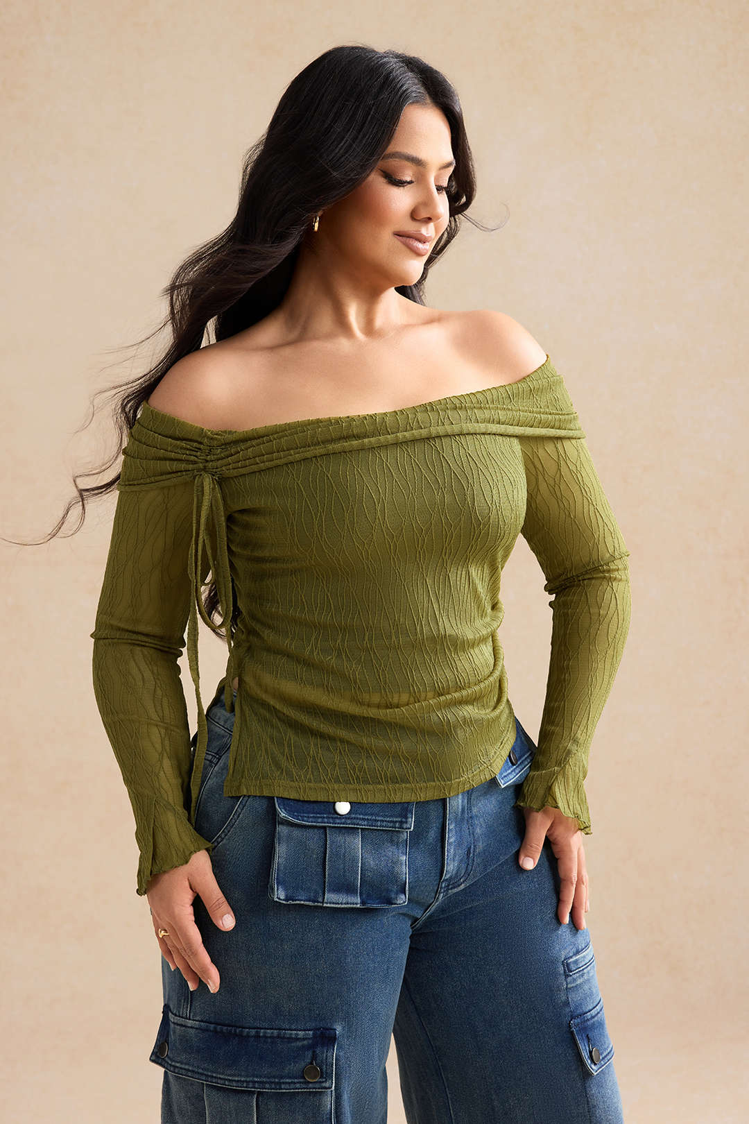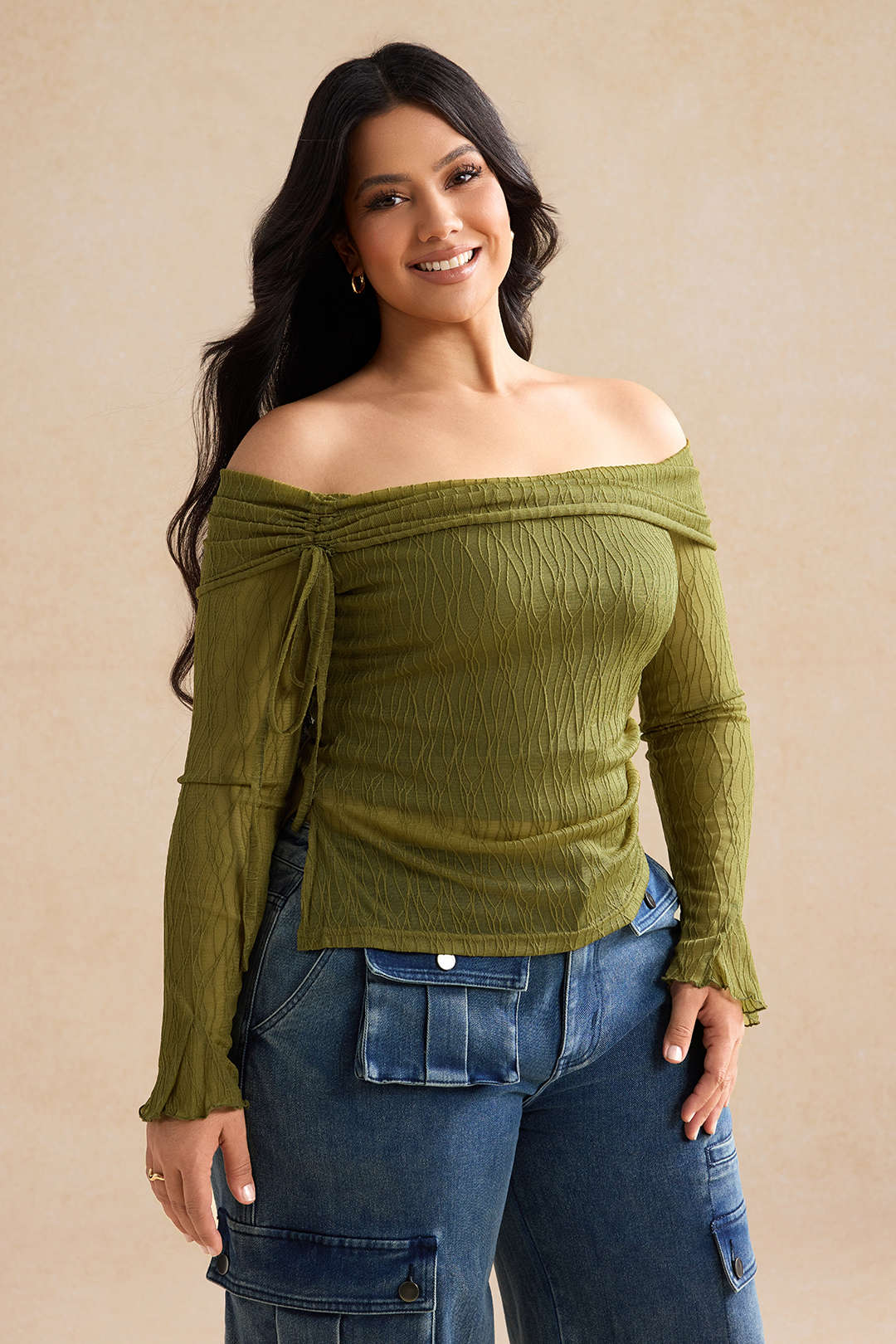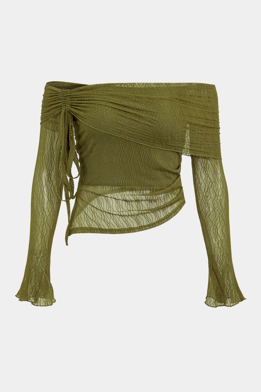 Plus Size Off Shoulder Drawstrings Long-Sleeve Top