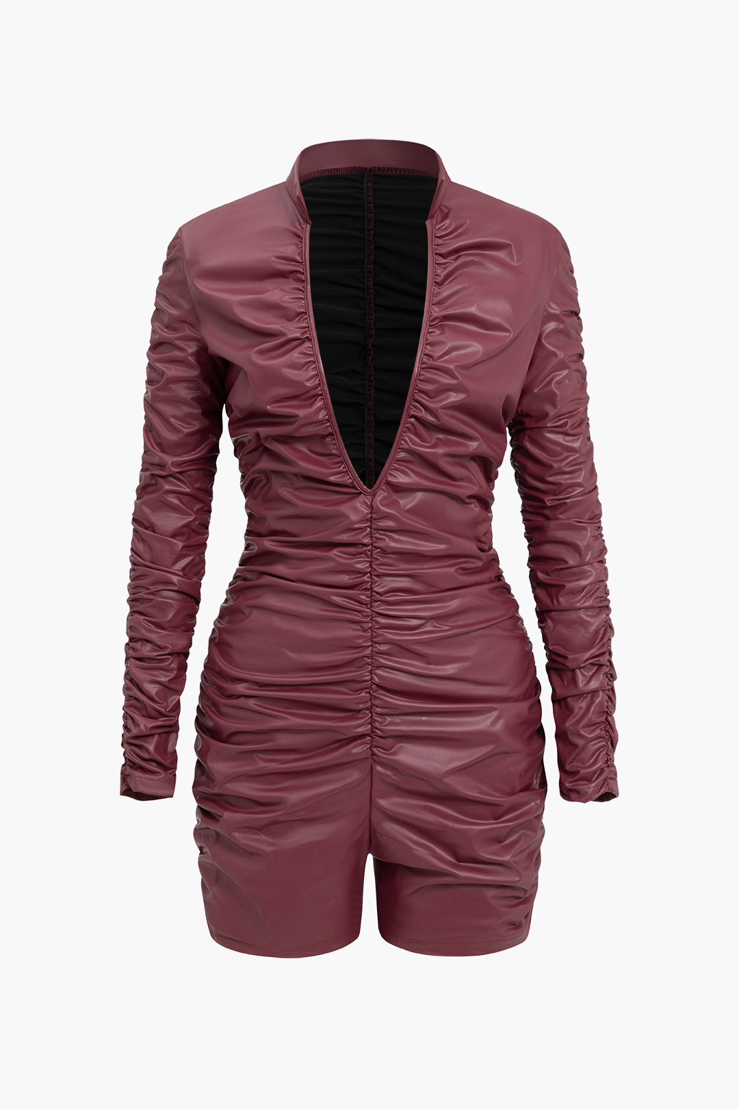 Solid Ruched High Elastic Leather Romper