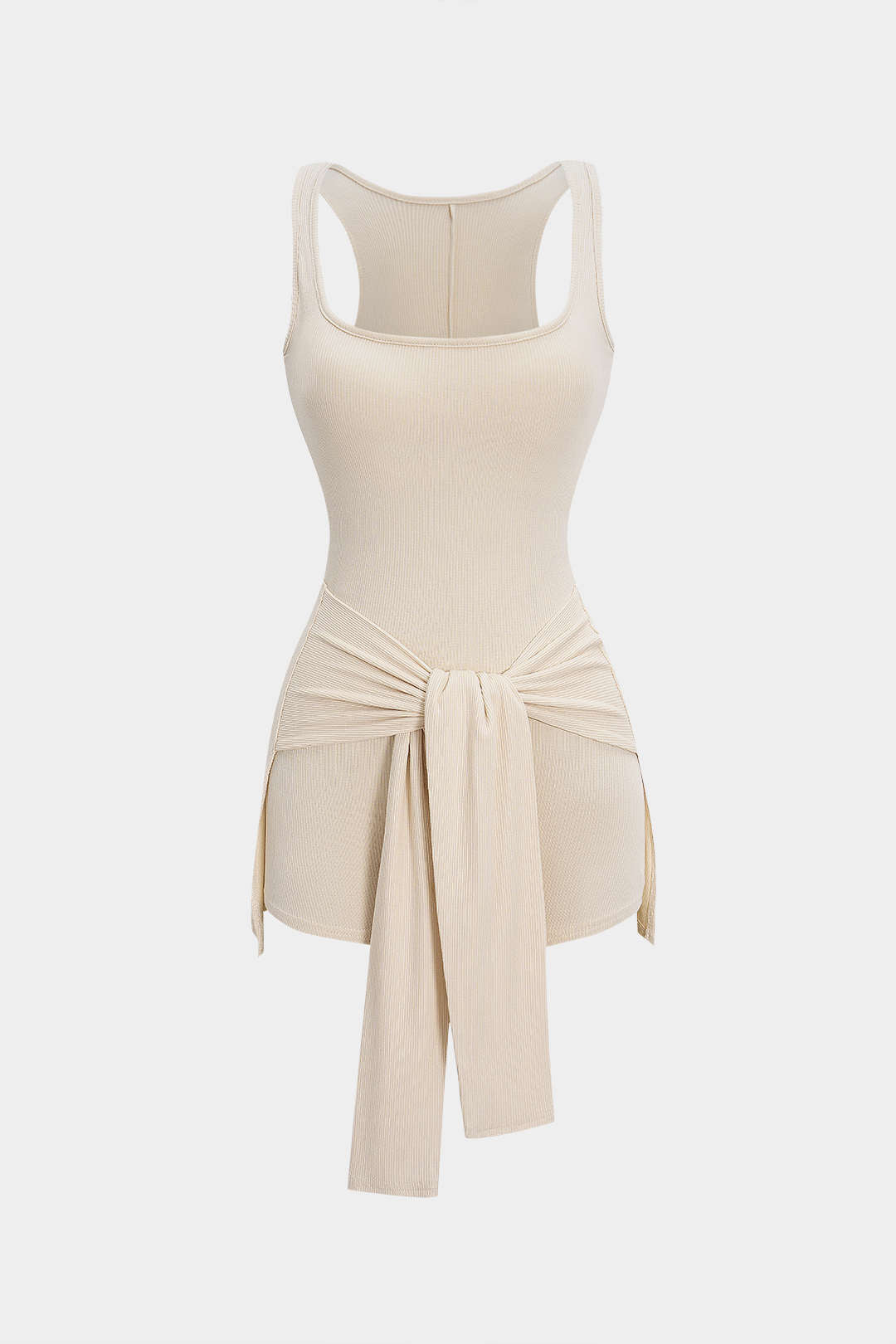 Ruched Tie-Up Square Neck Sleeveless Romper