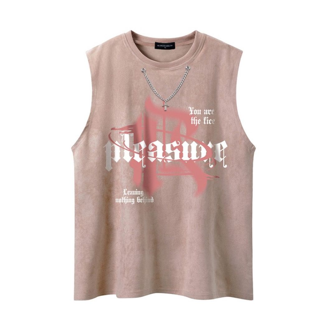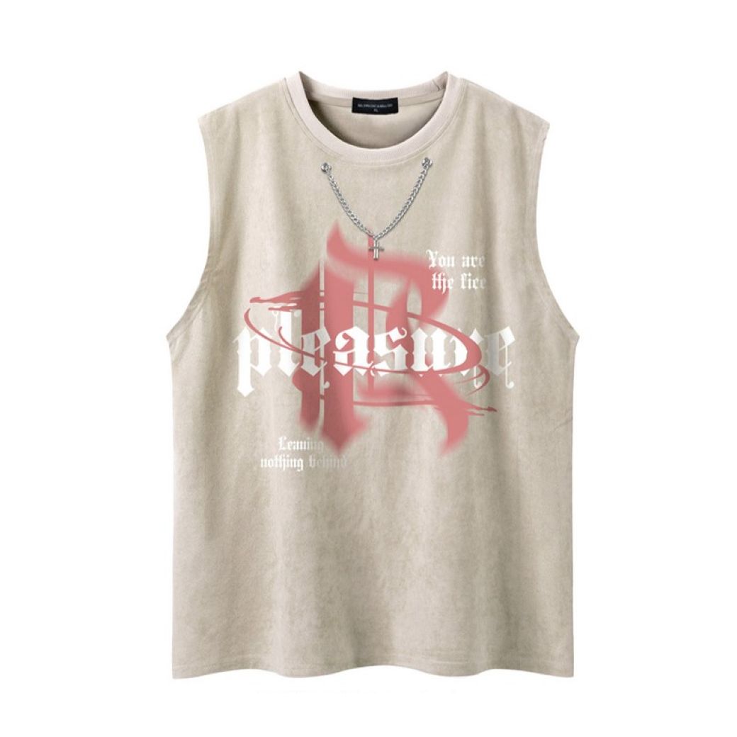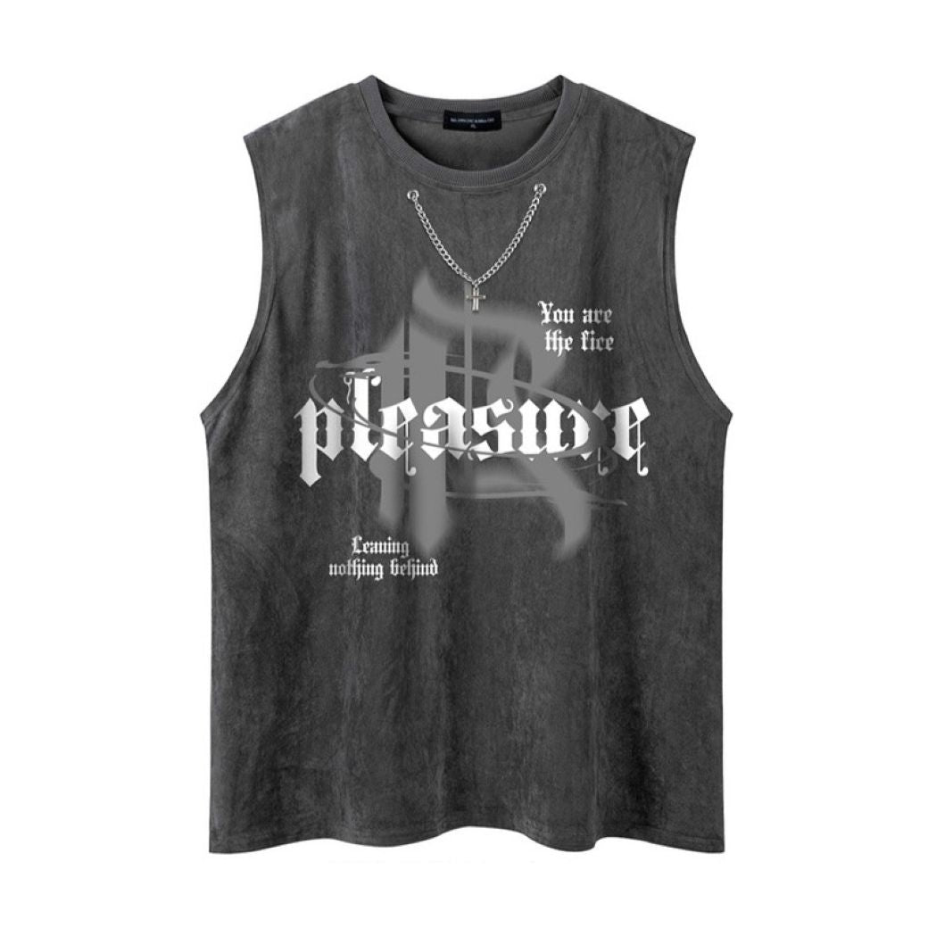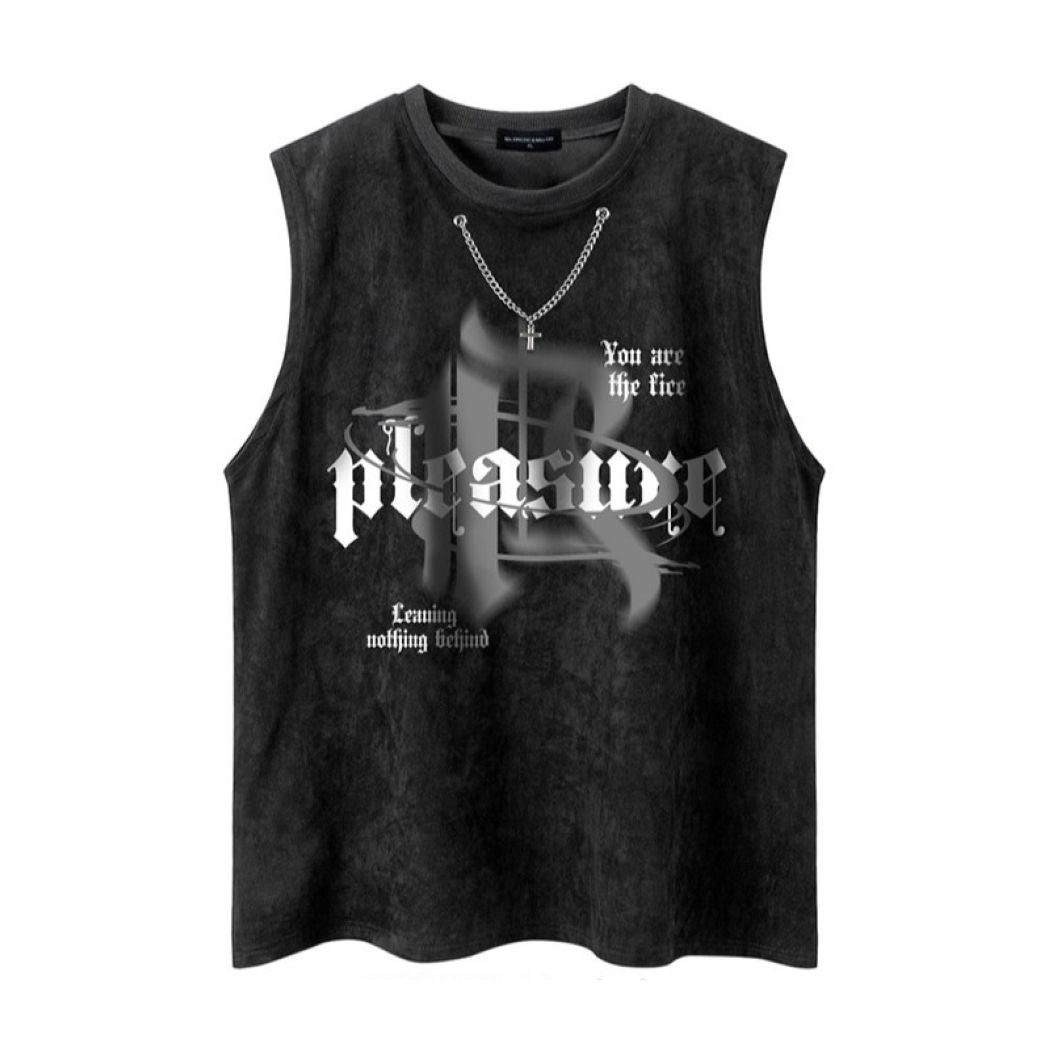 Iconic Cross Necklace Graphic: This tank top features a striking cross necklace graphic on the front. giving the illusion of a layered accessory. The bold design captures the essence of hip hop culture. adding an eye-catching element to your ensemble without the need for extra jewelry.